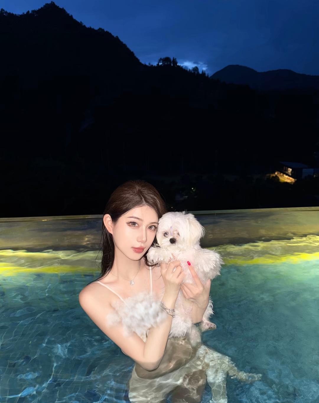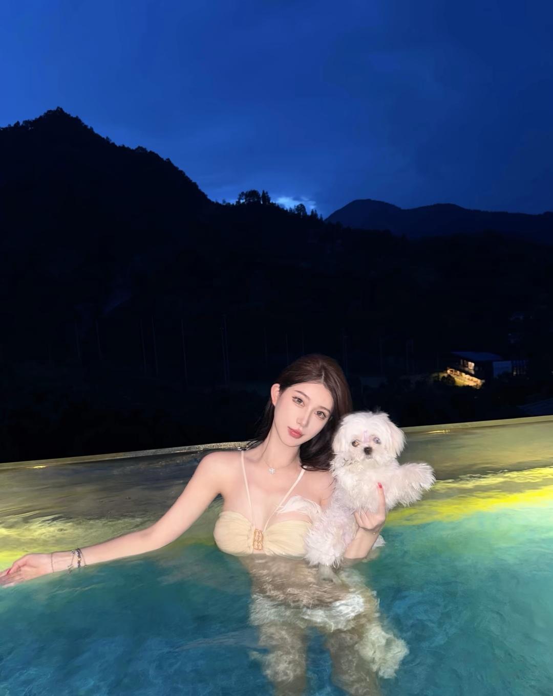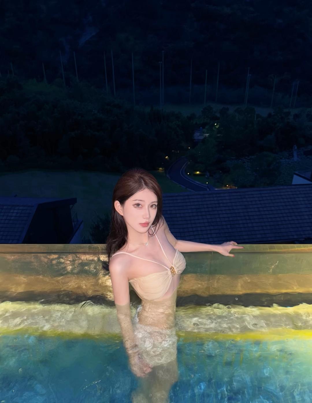 夏日泳池边,优雅白裙与草帽的完美搭配,轻松自在,享受美好时光。🌞💃🏖️