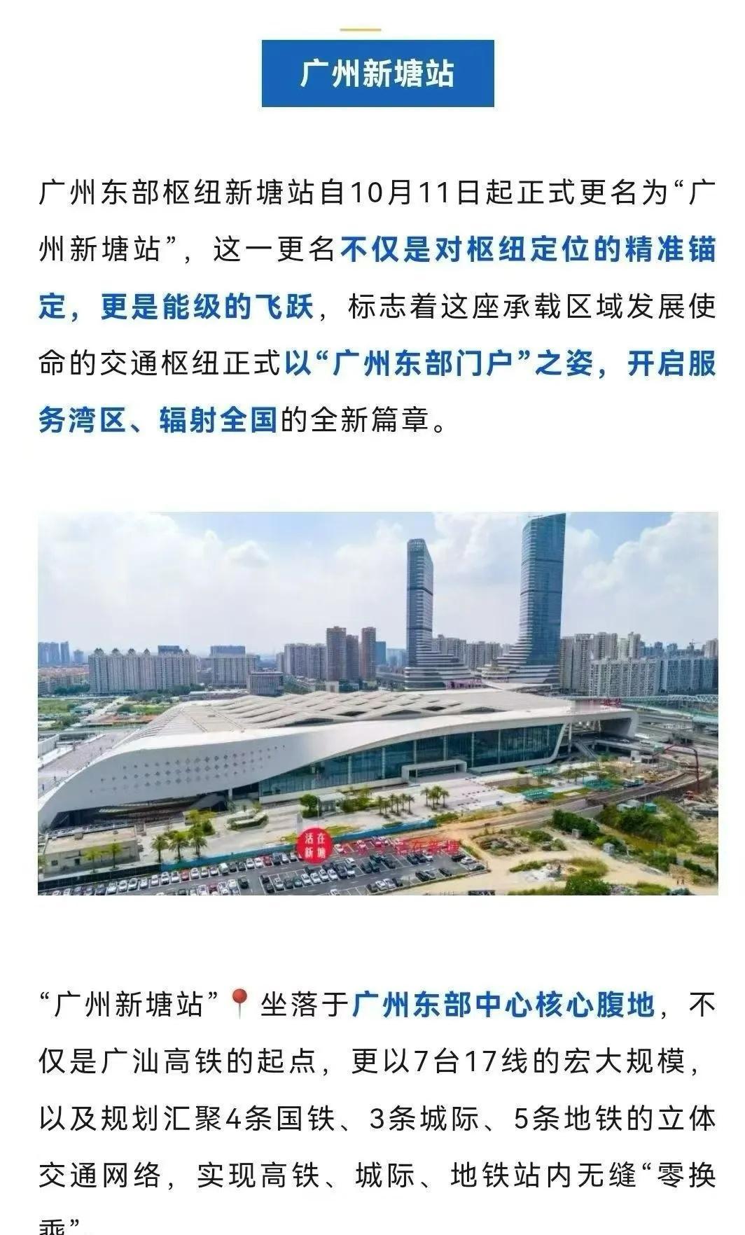 新塘南站高铁站更名广州新塘站 拍照姿势 轨道交通 交通便利 城市交通规划 留下地铁站 城市发展潜力 广州新塘站已开通全国七省60多个市,包括也开通了直达香港,澳门的直达,非常便利!加上广州地铁13号线开通直达市区天河公园站,轻轨线又串连深圳宝安机场和广州白云机场两大国际机场,新塘名副其实的广州东部交通枢纽中心,