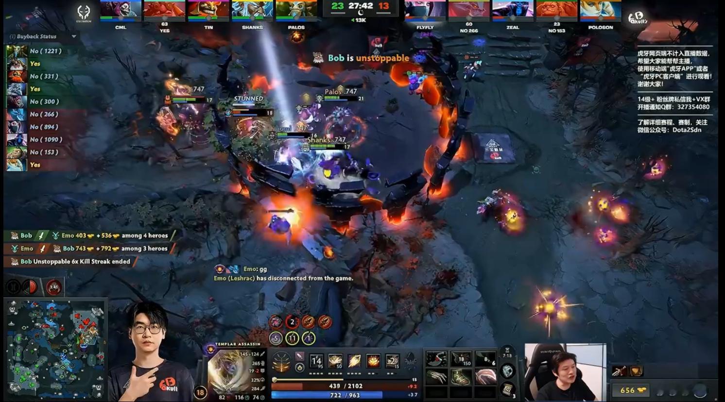 YB好像得了一种只要5人出现在同一个屏幕打团基地就会自动爆炸的病….. 永远2-3个人甚至单枪匹马去跟对面满编打团再次经历线优-被翻-被碾压负于XCTN,伴随这场垫底之争的失利YB战绩来到1-6[泪奔]