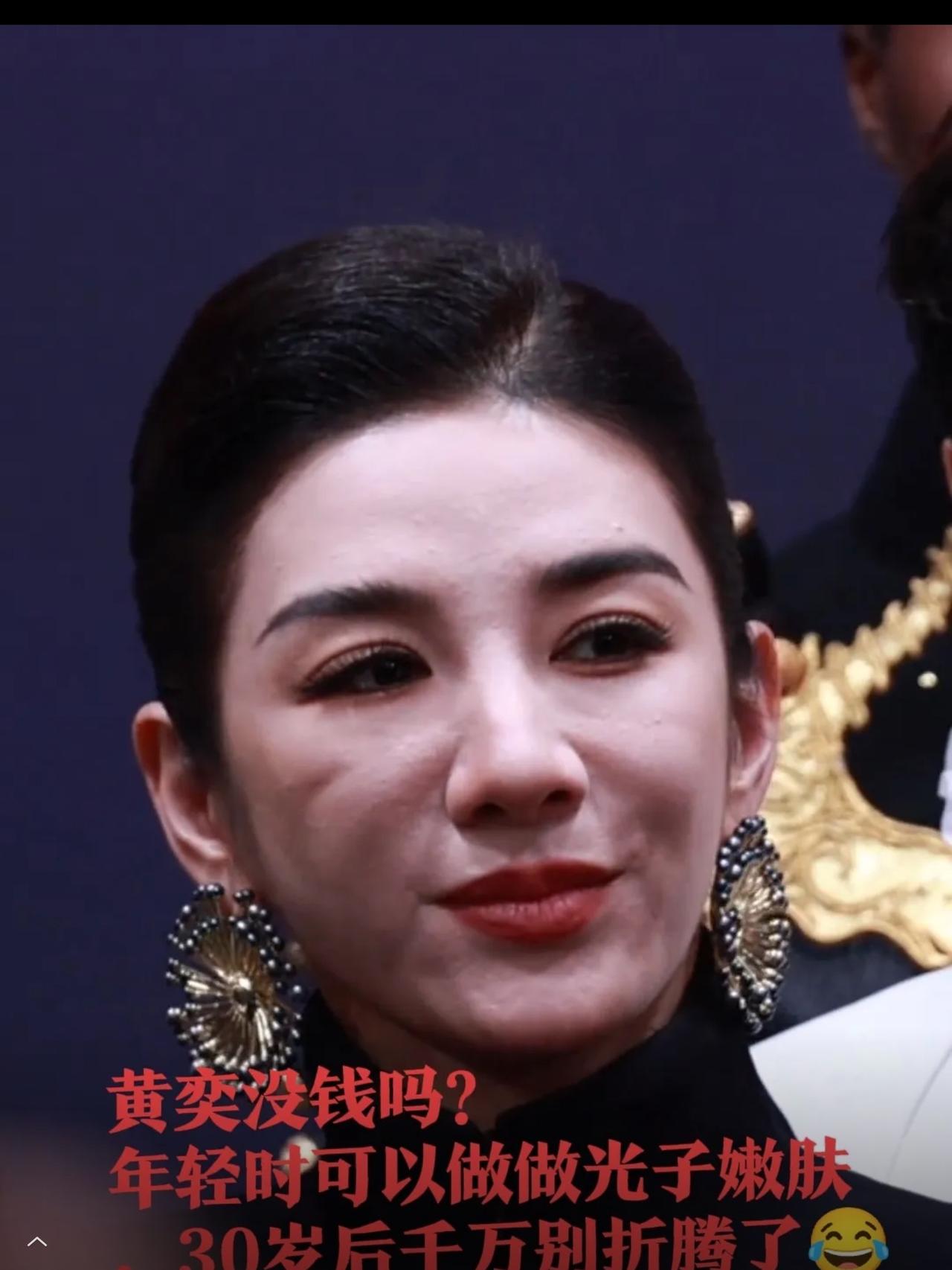 黄奕也没逃过地球引力,你看那嘴角的法令纹多深,脸上的印第安纹,已经把脸腮的肉分离成了两半。眼睛也没有胶原蛋白的支撑,显得很有年龄感。过去是美过,如今四十➕的年纪,跟好看不沾边了,小动作明显不自信。 头阵子她还对自己女儿说,进演艺圈是需要长相的。如今的这幅面孔,真是一言难尽。美人迟暮,多少心酸在其中。即使是明星,也没有什么好办法对抗时间。