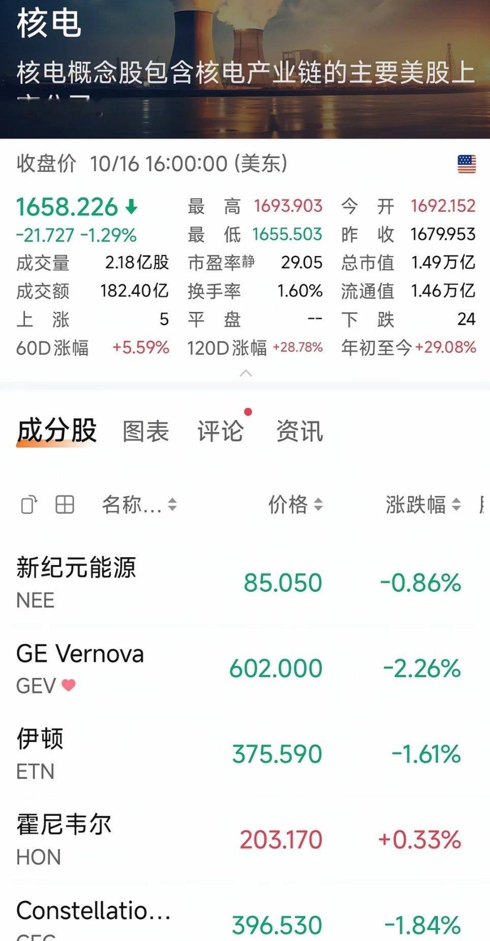 核电核聚变概念全线回落,29家概念公司上涨只有5家下跌24家,