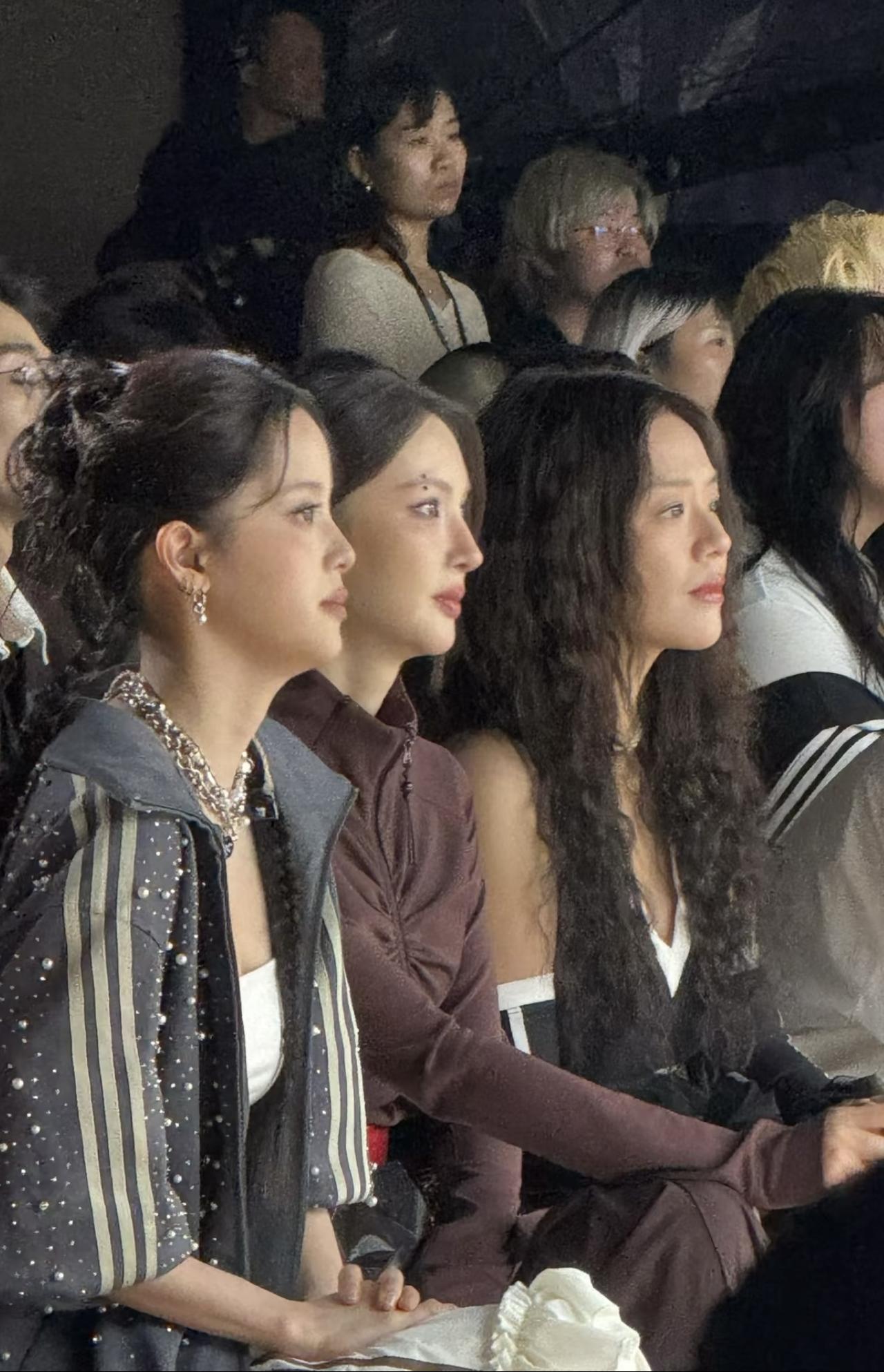 10月16日,马思纯、金晨、欧阳娜娜与李现、王安宇坐在一起看秀的画面。 金晨与