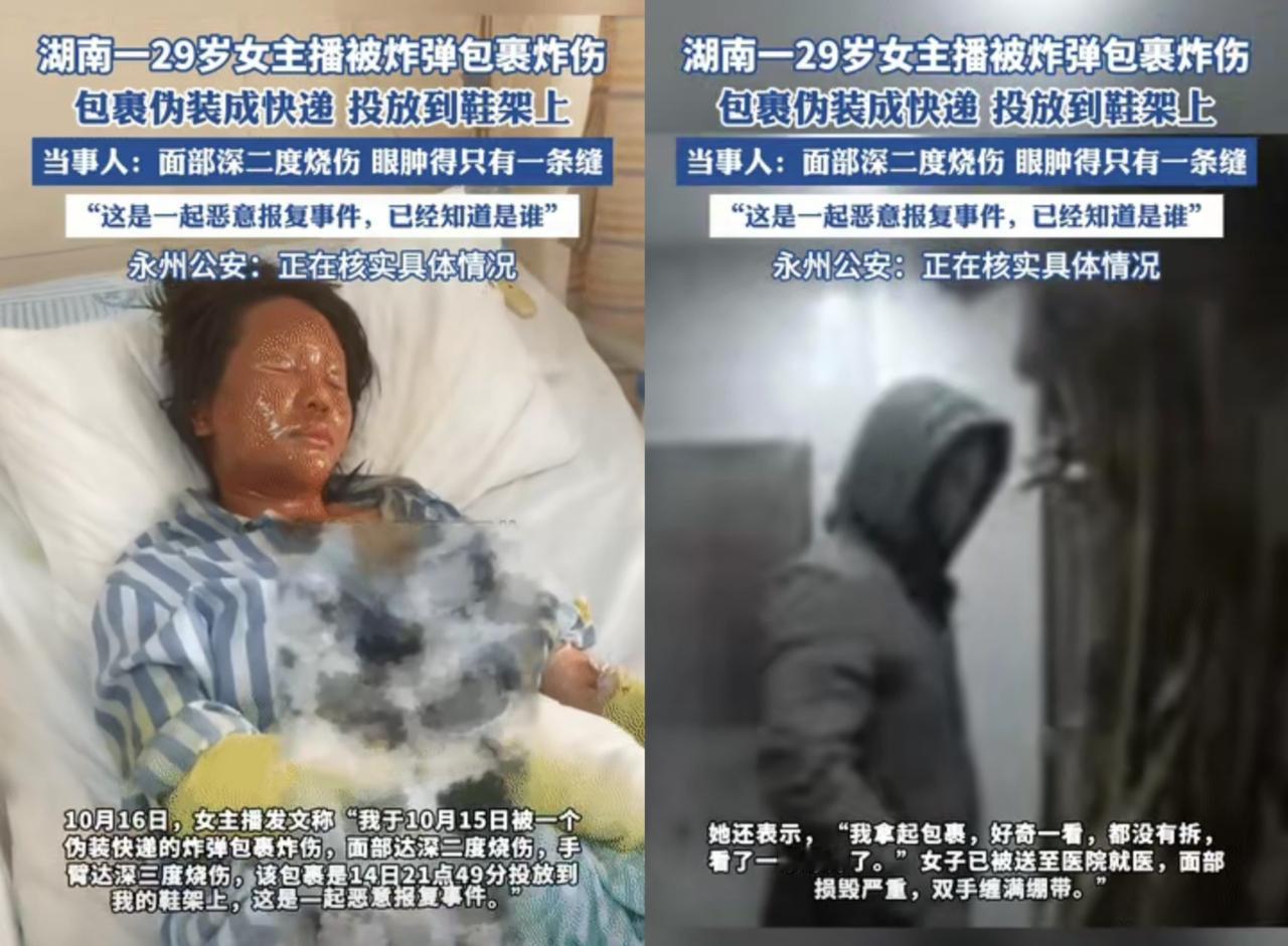 湖南29岁女主播在家准备拆快递时,只是看了一眼包裹还没来的及拆开就发生了爆炸,导