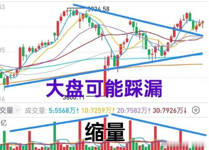 周三大盘突破分时三角形,周四大盘冲高回落,回踩了三角形颈线区域(3900点),收盘回到了颈线上方,守住了短期均线(MA5天均线)。