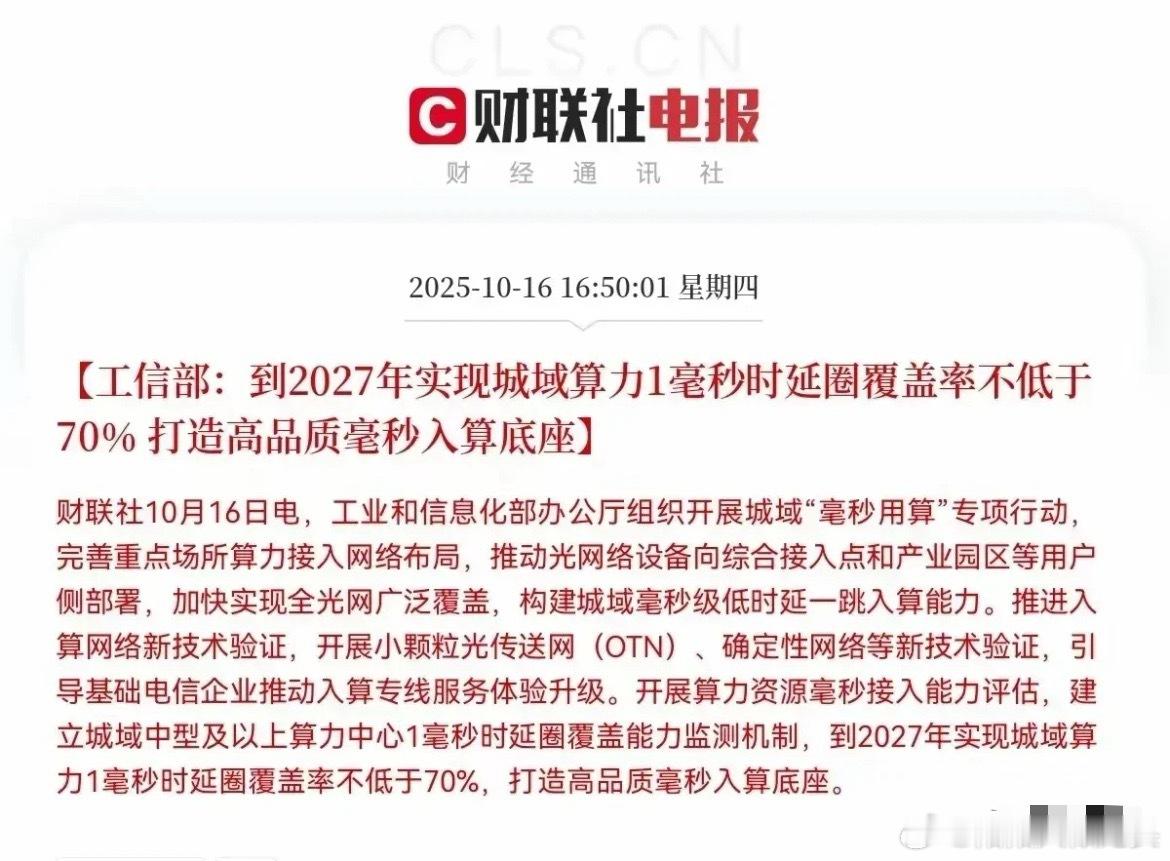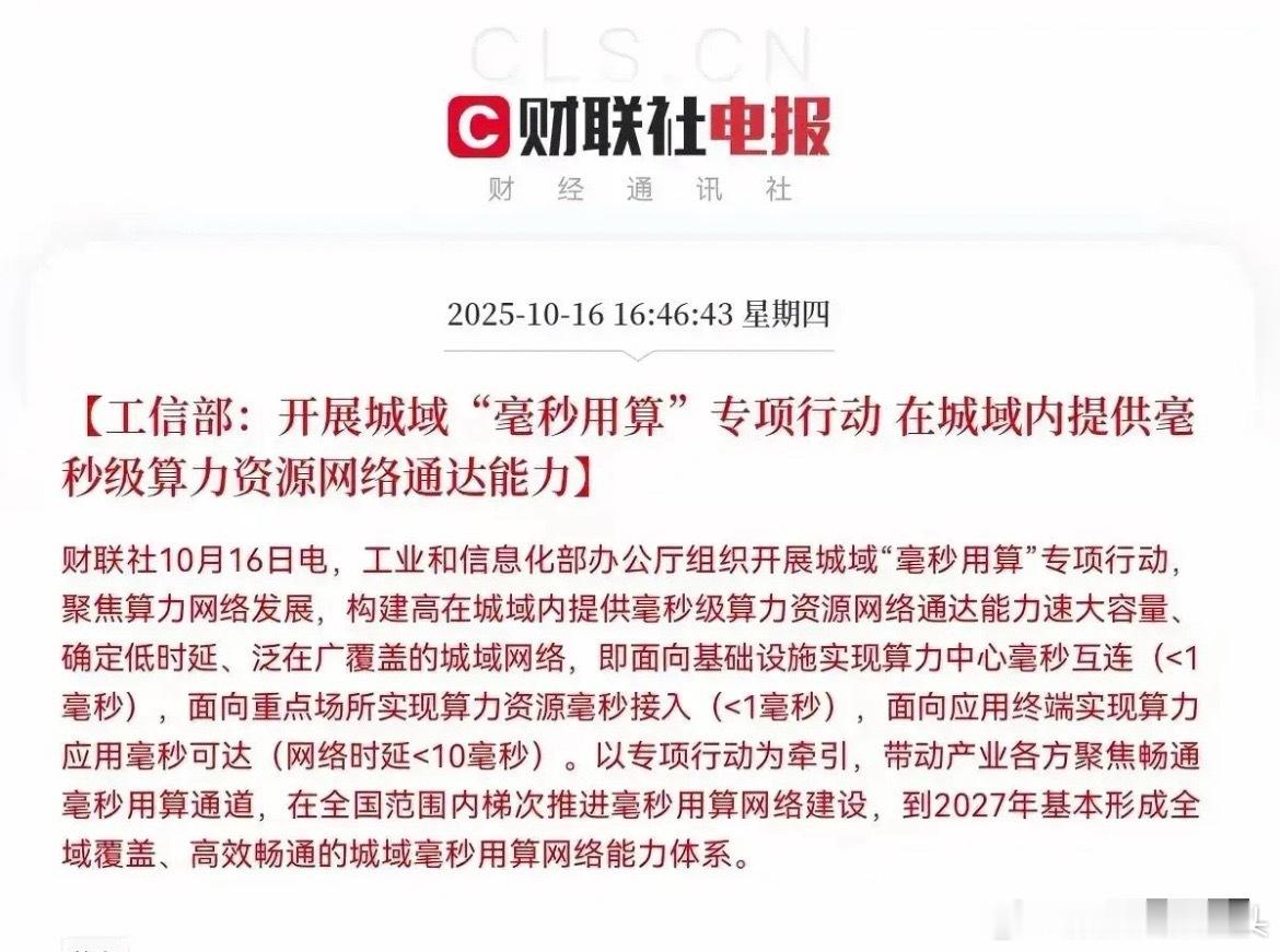 这一板块迎来利好!工信部开展的城域“毫秒用算”专项行动,核心是构建毫秒级低时延