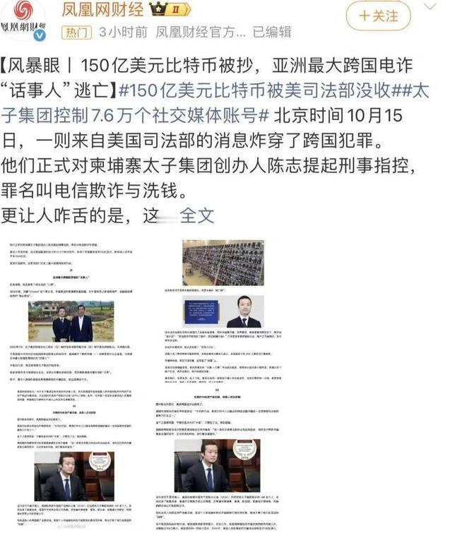 被美国全球通缉的陈志,一个80后。手握柬埔寨、英国、塞浦路斯国籍。其实是福建人。24岁就到柬埔寨,开始搞房地产。30来岁就建立太子集团。短短时日,太子集团就成为柬埔寨,一家如日中天的庞大集团。 陈志24岁那年,把目光投向了柬埔寨。 当时的柬埔寨,对外资有不少优惠政策,低成本的劳动力也吸引着想找机会的创业者,陈志就顺着这股趋势,一头扎进了房地产行业。 他从小小的开发商做起,没花太长时间就摸清了当地的市场规则,也攒下了最初的人脉。 到30来岁的时候,他牵头成立了太子集团,短短几年间,这家集团就在柬埔寨站稳了脚跟,表面上看,业务覆盖了金融、地产、医院、旅游,怎么看都是一家势头正猛的庞大企业。 不过,仔细想想就会发现,一个年轻人能在异国他乡这么快把生意做大,背后肯定不只是普通的商业运作。 他的“快速成功”里,藏着偏离正轨的捷径,而这条捷径,最终把他推向了不可挽回的境地。 太子集团摆在台面上的业务只是“遮羞布”,真正支撑起这家企业的,是见不得光的灰色产业。 柬埔寨当地规模最大的电诈园区,正是陈志手下的产业。 他的团队会用“海外高薪就业”当幌子,把很多人骗到柬埔寨的园区里。 这些园区看着像正常的办公区,实际上却和监狱没区别: 进去的人如果不愿意配合搞诈骗,就会遭遇暴力威胁,甚至酷刑折磨,最后只能被迫坐在电脑前,扮演“温柔暖男”或“资深理财导师”,对着全球各地的人设计骗局。 他们不光搞“爱情杀猪盘”,还把加密货币掺进去,做成“爱情+投资”的复合型陷阱,从中国、美国、欧洲到俄罗斯、越南、中国台湾,受害者遍布多个国家和地区。 为了让自己的黑产帝国更“稳固”,陈志还在柬埔寨给自己打造了光鲜的外衣。 他不光当上了柬埔寨前首相洪森和现任首相洪玛奈的顾问,还被授予“公爵”头衔,2024年更是拿到了“柬埔寨年度企业家”的称号。 这些头衔让他在当地的名声越来越响,也给太子集团的灰色业务罩上了“合法”的假象。 除此之外,他还把资产撒到了全球:在香港控股了上市公司坤集团,在英国伦敦买下19处物业,其中一栋市中心的办公楼价值近一亿英镑,北伦敦还有一套1200万英镑的豪宅。 这些看似靠“本事”赚来的资产,每一分都沾着受害者的血汗。 有人被他骗光了准备结婚的彩礼,有人把养老钱投进去打了水漂,还有人借遍亲戚朋友凑的“投资款”,最后全成了他口袋里的钱。 陈志以为靠着多国国籍和海外资产,就能一直逍遥法外,可他没料到,跨国执法的重拳来得这么快。 美国司法部率先出手,直接锁定了他存储资产的比特币钱包,一次性没收了127271枚比特币,按当时的市值算,这些比特币价值150亿美元。 几乎同时,英国政府也同步行动,冻结了他在伦敦的所有房产,还把上百个跟太子集团有关的公司和个人拉进了制裁名单,连他手里一幅准备拍卖的毕加索画作,都被纳入“依法保管”的范围。 如今的陈志,没人知道他躲在哪个角落。 但美国和英国的通缉令还在,他面临的指控包括加密货币投资诈骗、洗钱,一旦落网,最高可能要被判40年监禁。 今天的分享到这里就结束了,大家对此事有何看法,欢迎在评论区留言和讨论,感兴趣的可以点击头像加关注,我将每日更新优质内容,我们下期见。 信源: 原文登载于今日湖北2025年10月16日关于《美英联合打击柬埔寨最大电诈太子集团》的报道