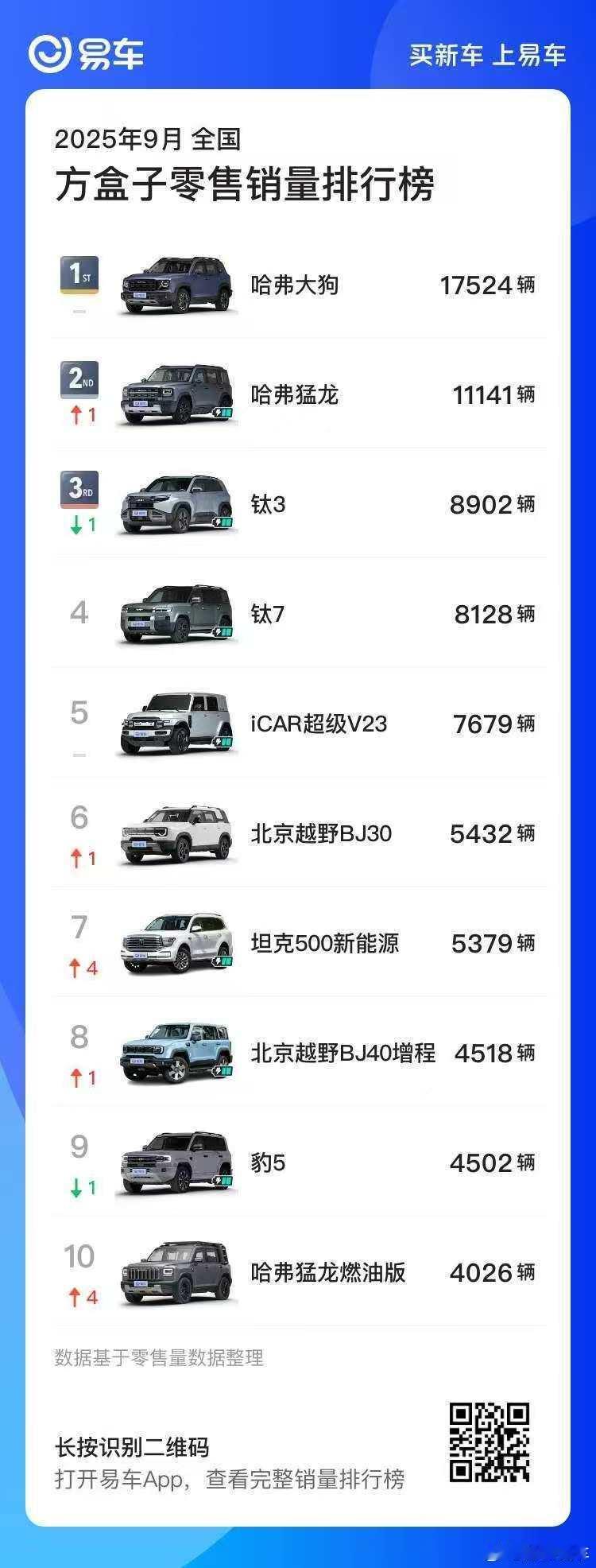 易车月考成绩单新鲜出炉!哈弗大狗17524辆蝉联9月方盒子车型销量TOP1!哈弗