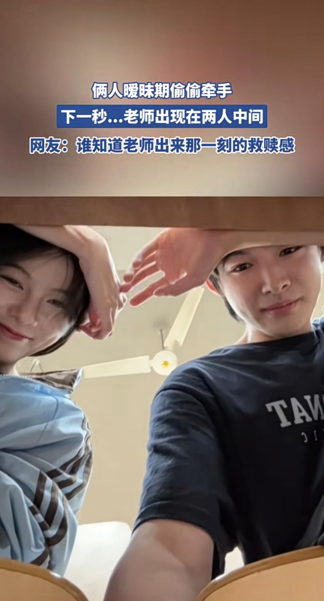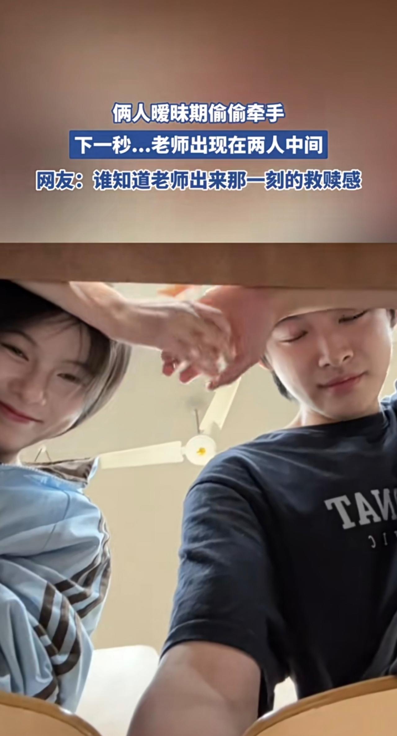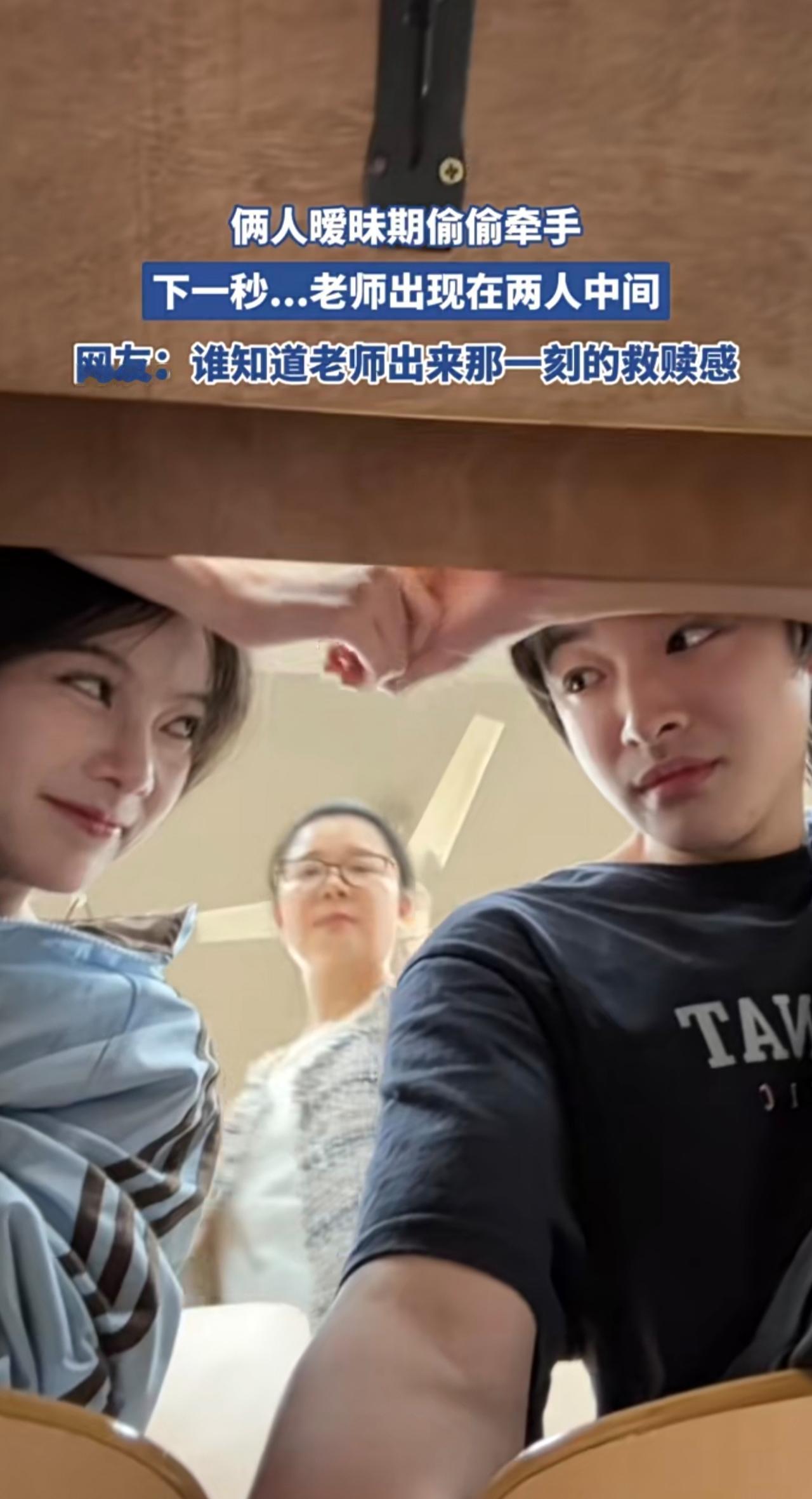 俩人暖昧期偷偷牵手 下一秒...老师出现在两人中间 网友:谁知道老师出来那一刻的救赎感
