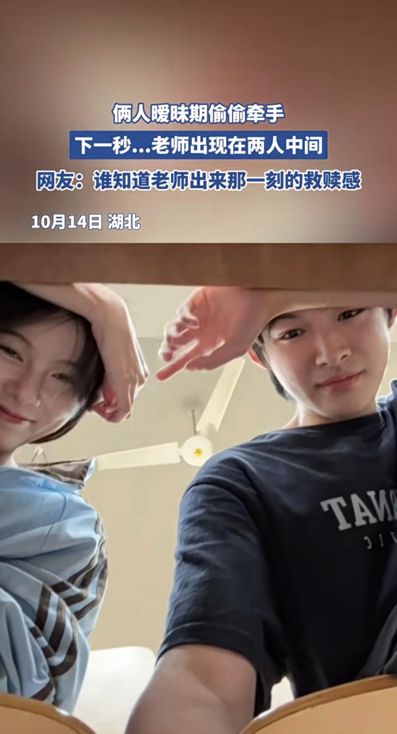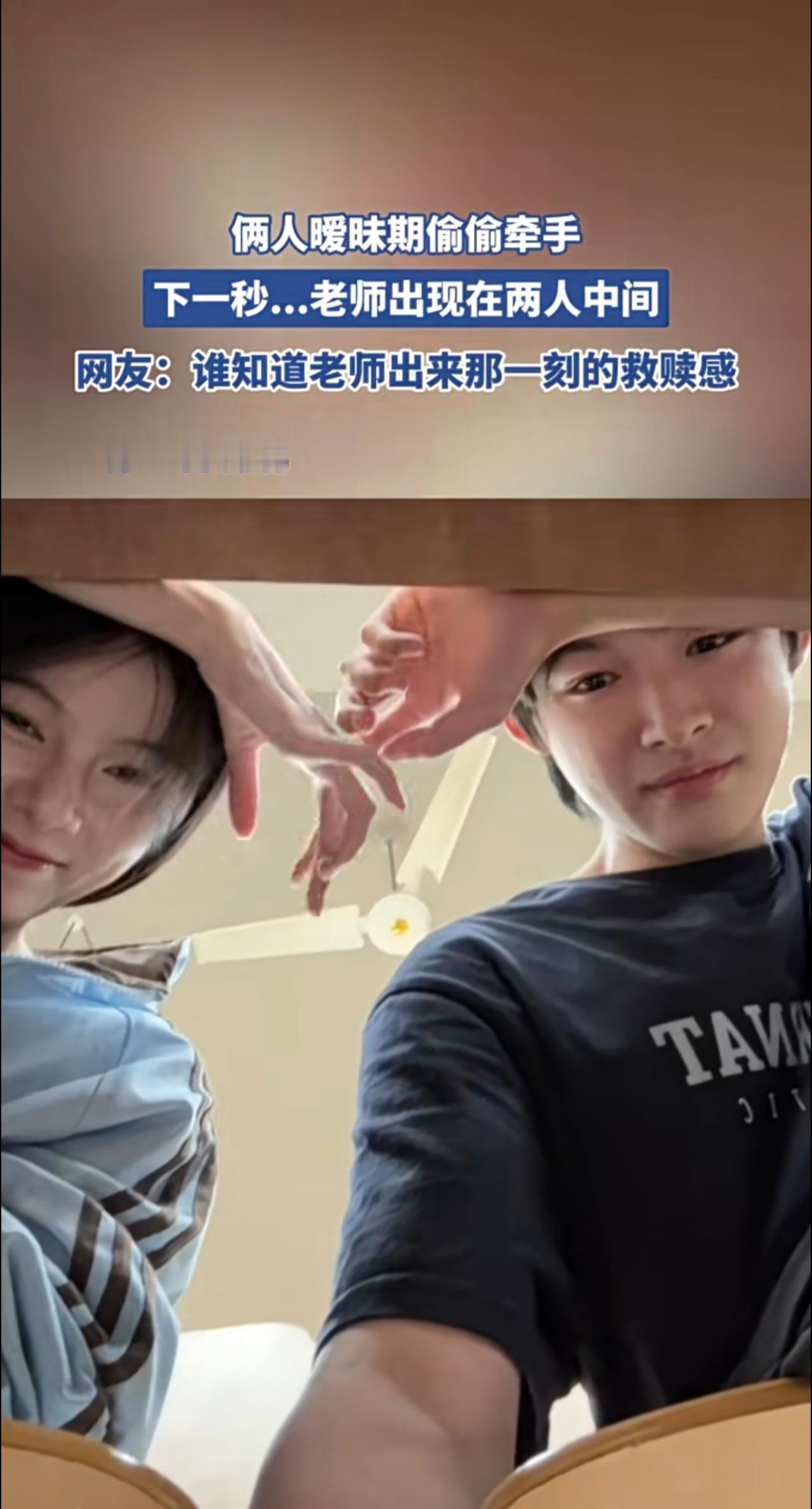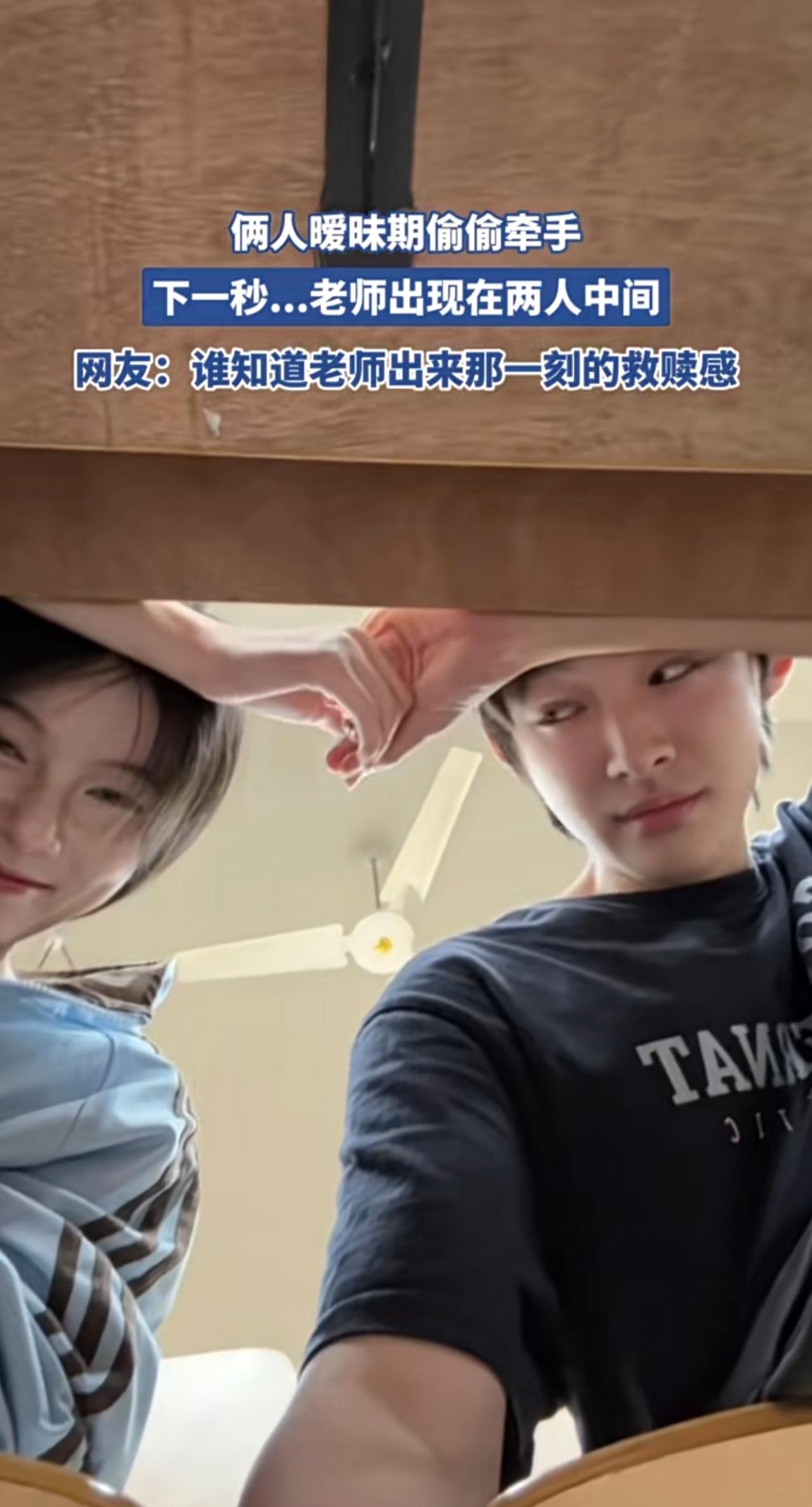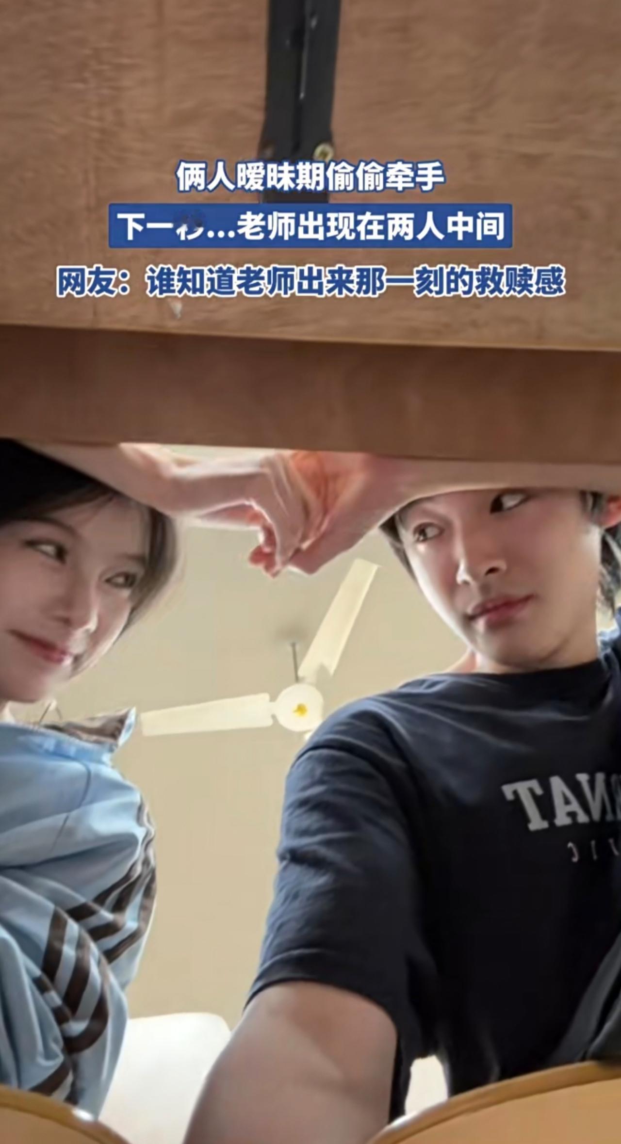 俩人暖昧期偷偷牵手 下一秒...老师出现在两人中间 网友:谁知道老师出来那一刻的救赎感