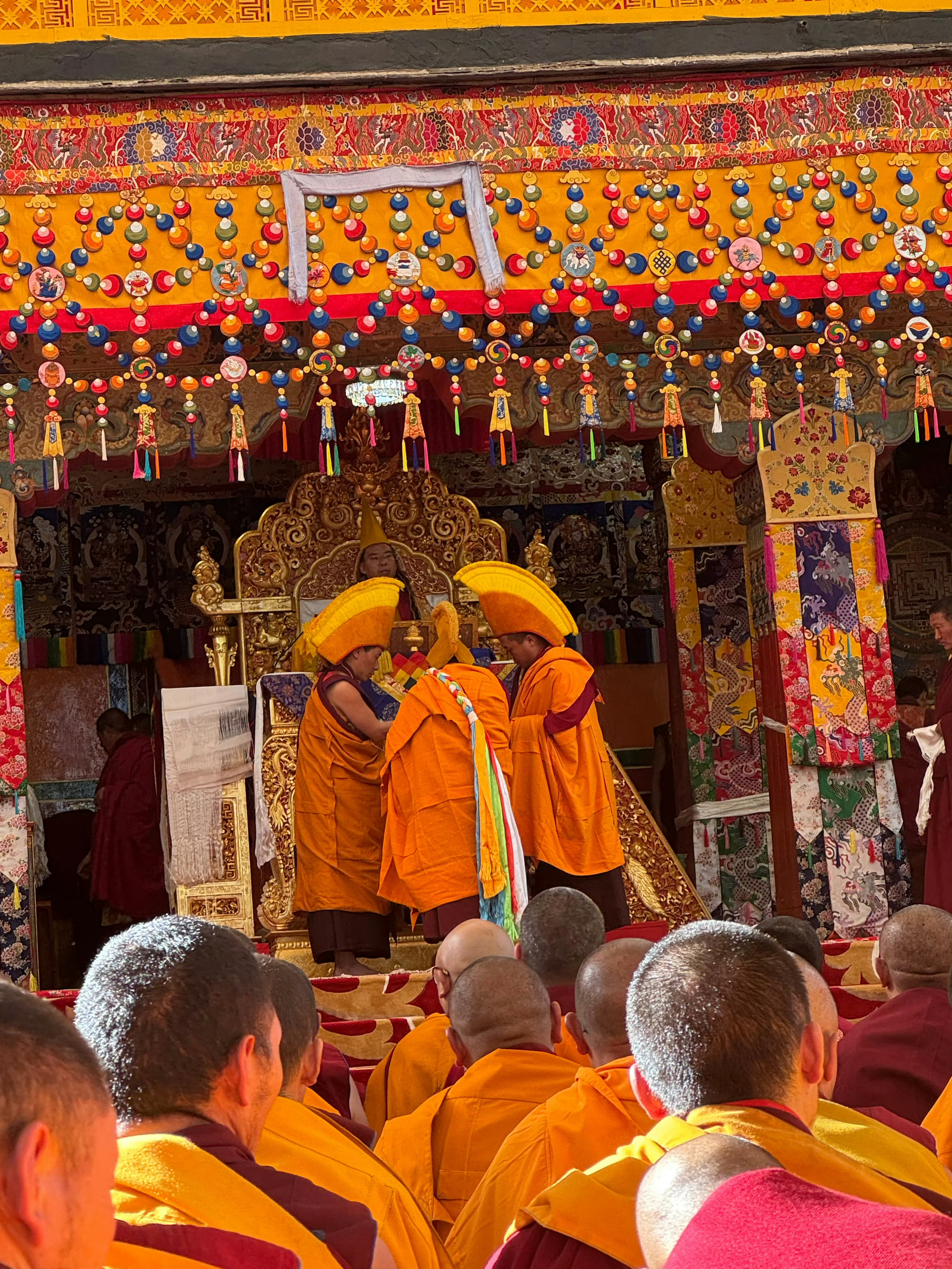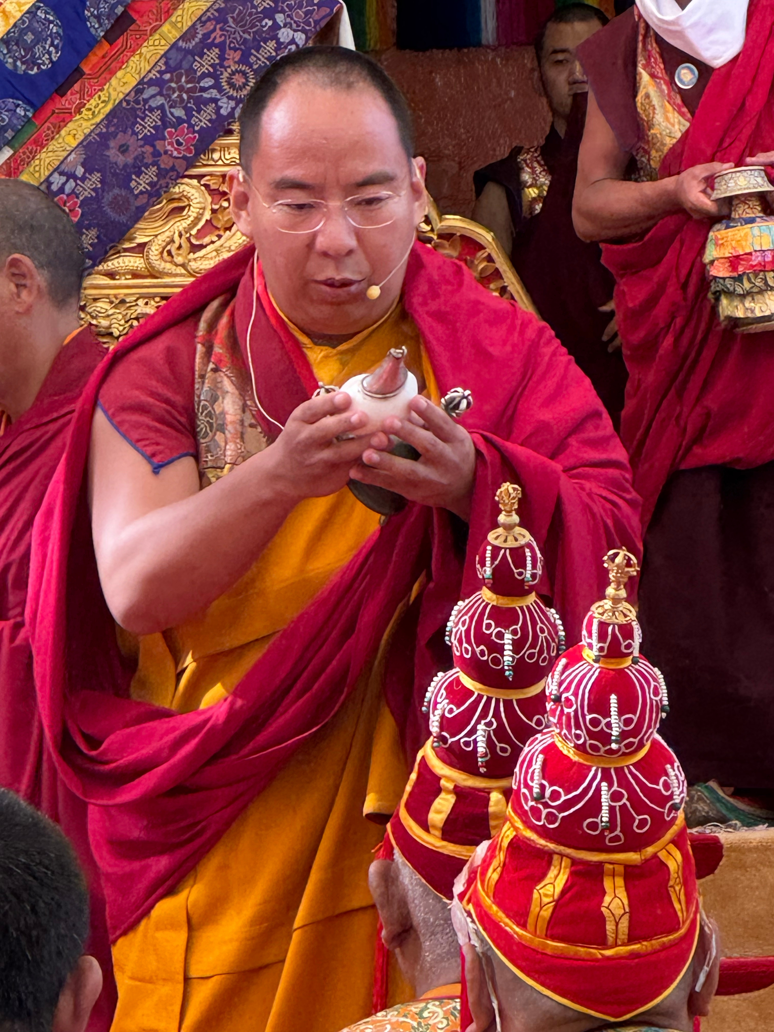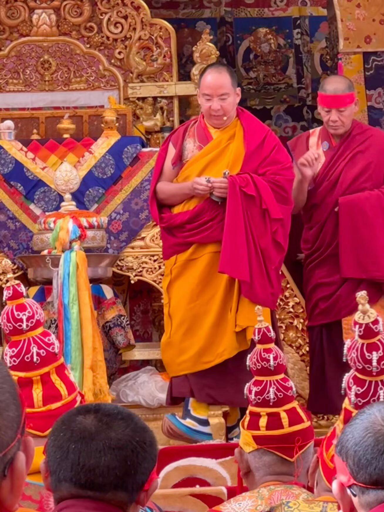 当几千人的哈达一次次在空中飞起传递,最终奉达班禅面前;听着班禅一句一句教授诵金刚经,盛装的高僧大德做仪轨,以众生为亲,行智悲之愿……感动…..震撼…. ​​​