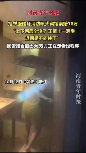黄金周期间,有客人在酒店客房的消防喷淋头上挂衣服,致使喷头玻璃球破裂,大量水流外泄,约流出十吨水,宾馆上下两层全被水淹。酒店核算后索赔16万,客人认为金额过高,双方已进入诉讼程序。 实际上,类似事件并不少见。2025年7月,贵阳一消费者因挂衣服导致房间被淹,赔偿2000元;2023年5月,大连一大学生也因同样举动赔偿了一万多元。消防喷淋系统十分精密,在火灾发生时可控制火势,受到外力作用也会喷水。入住酒店时,千万别为图方便而做出糊涂事,否则损失可不小! 酒店花洒意外 水带喷淋 装修消防喷淋 消防喷淋温度 喷淋层 消防喷淋金属 房屋喷淋