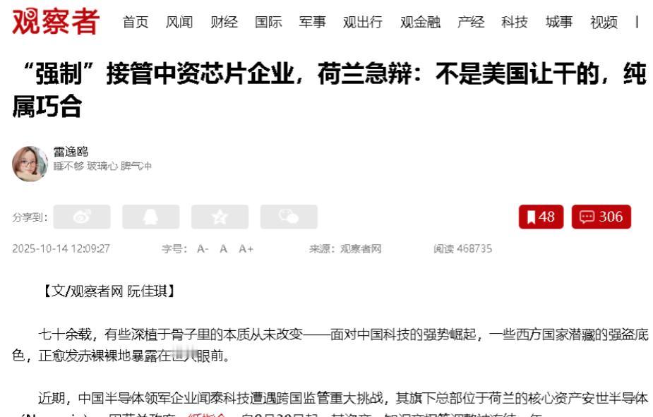 [微风]欧洲刚把中资芯片厂强制接管,中国反手就把仓库大门上锁——安世半导体惠州、上海两大基地里价值数亿美元的晶圆、封装件,如今一箱也飞不出保税区。荷兰正连夜跟中方部委商量豁免,语气急得冒烟。 几周前,大众、宝马本打算年尾再冲一波产量,结果生产线突然安静下来,不是工人放假,而是最重要的芯片,还被困在大洋彼岸的仓库里。 原因是9月底,荷兰政府以“国家安全”为由,突然宣布接管安世半导体,这家公司虽在欧洲注册,但背后是中国资本主导。 荷兰的动作被不少人看成是在半导体博弈中的一次“精算出牌”,打的算盘是要多一点谈判筹码。 可算盘还没打响,链条的另一端就迅速反弹了,中国立刻更新了出口清单,把一批核心芯片和材料纳入许可范围,安世在中国的货物从那一刻起,全数冻结。 于是欧洲的汽车线断供,厂区里车壳排成长队,更糟的是,这场“真空”还向上蔓延,连原材料都跟着吃紧。 镓、锗、稀土这些关键金属的报价飙升,但钱再多也买不到货,过去欧洲人相信,只要有资金全球市场就会为他们敞开,如今才发现这口水井其实在别人掌心。 欧洲企业当然也尝试自救,安世位于马来西亚的新产线被迫连夜增班,却因技术验证周期太长、熟练工人短缺,只能勉强撑个场面。 而在法律层面,母公司闻泰科技已起诉荷兰政府,质疑此次接管的合法性,但跨国诉讼注定旷日持久,远水救不了近火。 这一连串的拉扯,让人重新看清了全球供应链的真面目,它不是单向依附,而是环环相扣,一旦有人试图用行政手段拔掉一环,冲击的不只是竞争对手,还有自己赖以为生的产业。 欧洲车厂的生产节奏被打乱,中国的芯片出口也被迫按下暂停键,谁都没讨到便宜。 全球化早已进入彼此掣肘的新阶段,任何国家若把供应链当成政治武器,最终只会砸到自己的脚。 产业的主动权,从来不靠行政命令争来,而是靠在关键技术和资源上的真实掌控力。 这一仗,没有赢家,但教训已经记在账上。欧洲的汽车人、亚洲的芯片人,都不得不重新思考:在这条看不见的钢索上,稳住平衡,比任何一次“出手更狠”都重要得多。