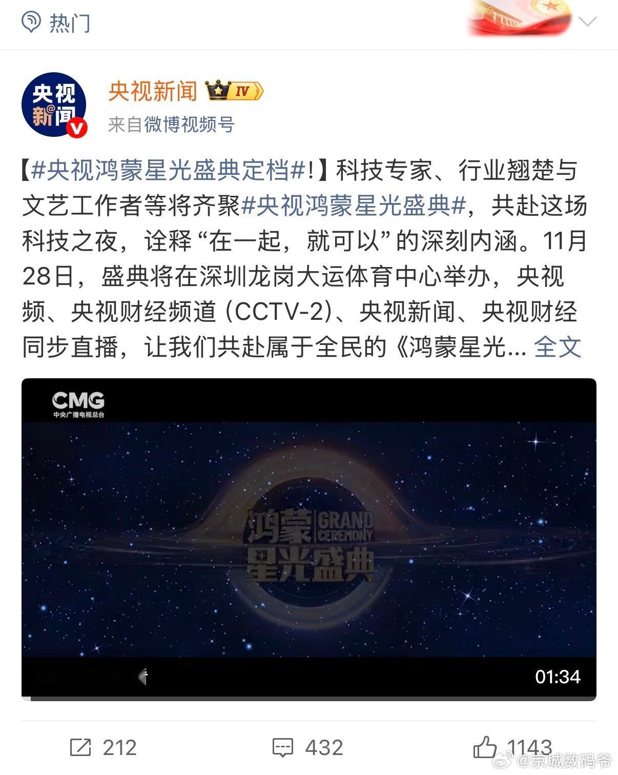 央视鸿蒙星光盛典已经定档!