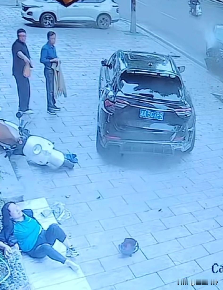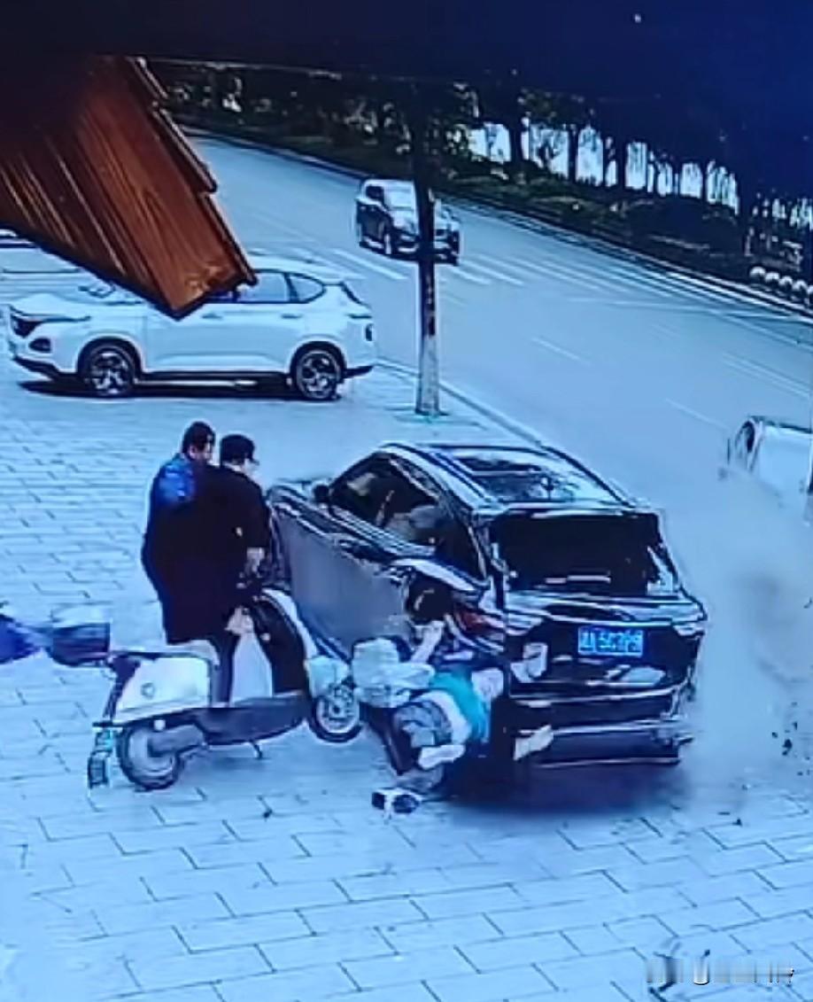 被撞飞的女的应该是怀孕了,先摸肚子以为手里抱着孩子甩飞了,吓死我了 这是个孕妇吗?老天保佑不要有事,多亏手上抱的不是孩子,幸亏抱着的是头盔,飞来横祸。这个黑车给她抵御了90%的伤害,伤的不轻,最起码养半年伤,十几万起步价了。幸好那根树挡住了,要不然还得冲过来,停着这个红车也得遭殃