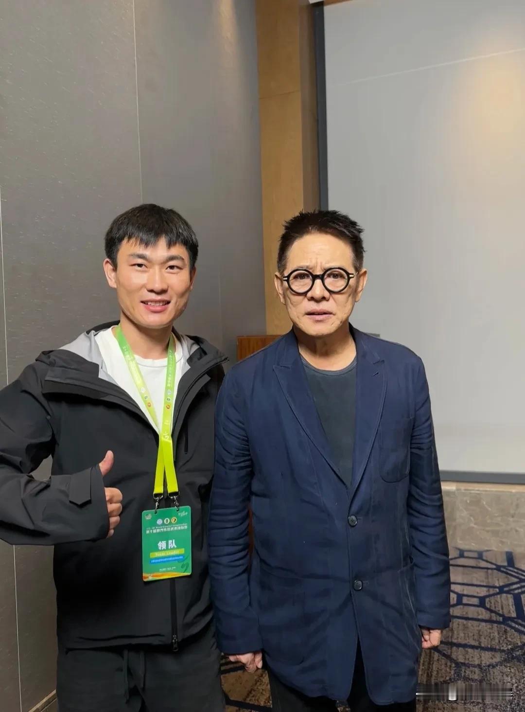 李连杰和吴京,两大功夫明星现身四川峨眉山体育馆参加活动。 李连杰戴着眼镜,穿着西装,衣服看起来有点皱巴巴的,穿搭非常随意,精神状态一般,看起来好憔悴。 吴京剪去了长发,剃掉了络腮胡子,穿着一身蓝色中式西服,身形结实健壮,精神抖擞,显得意气风发,年轻不少! 不过看着两大武大巨星的身高,杰叔1米69的身高应该是真实的,而吴京去掉鞋底厚度感觉跟杰叔差不多,估摸也就一米七吧!