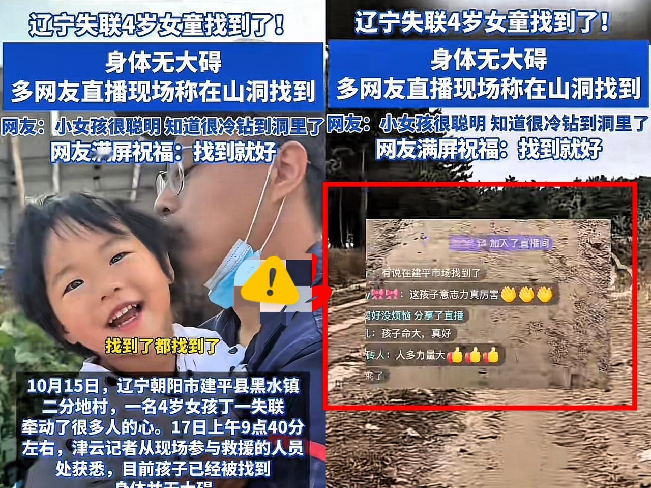 再一次被小孩给聪明到了!辽宁失踪的4岁女童找到了,失踪了两个晚上,昨天晚上还下大