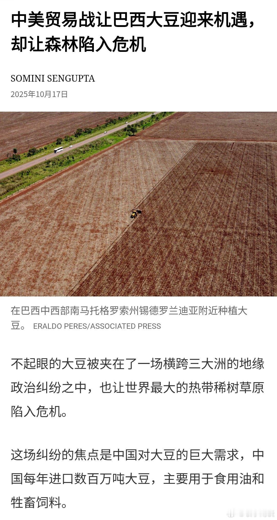 不起眼的大豆被夹在了一场横跨三大洲的地缘政治纠纷之中,也让世界最大的热带稀树草原陷入危机。