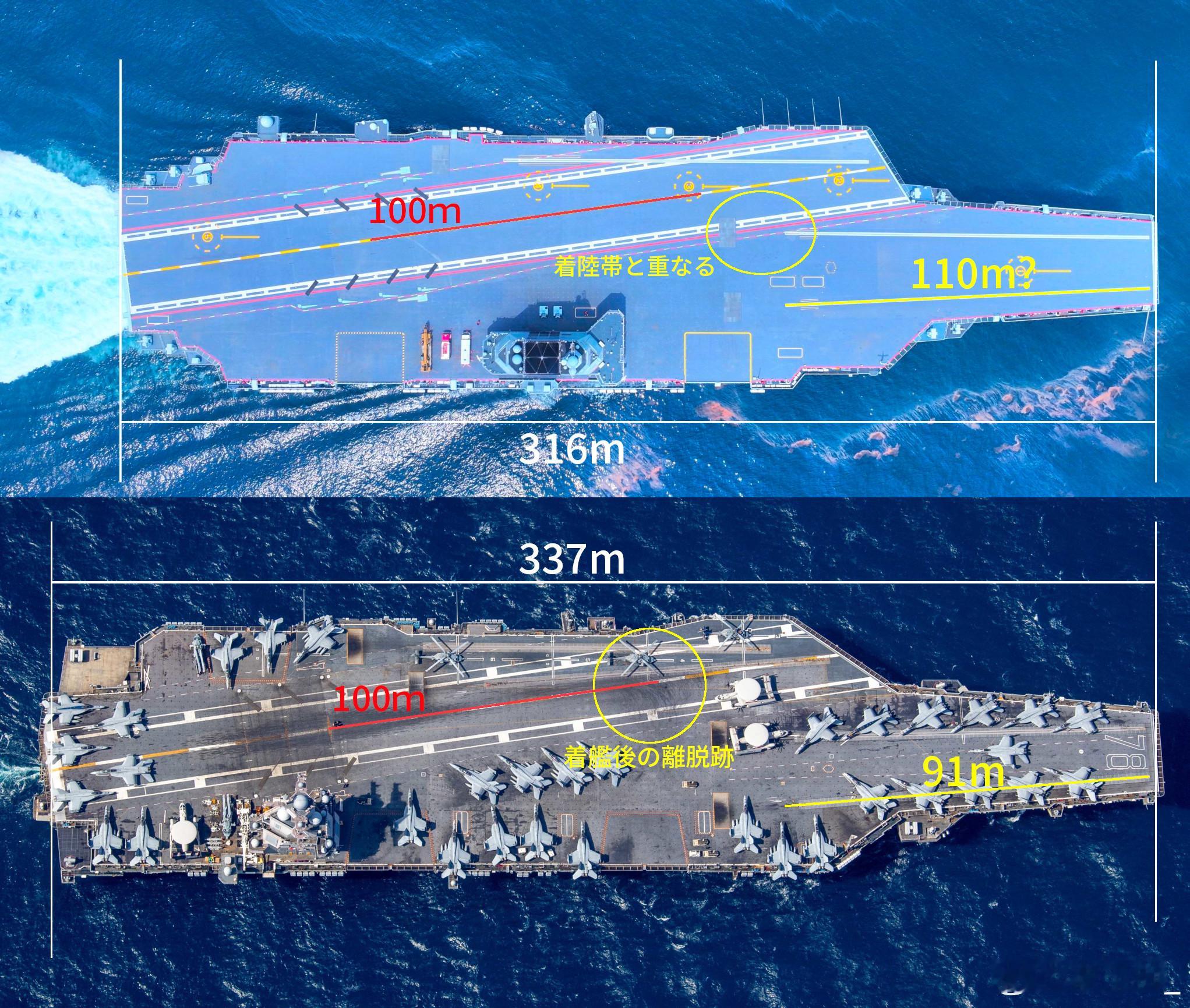 福特级长度虽然更长,但一、二号弹射器跑道反而比福建舰短。