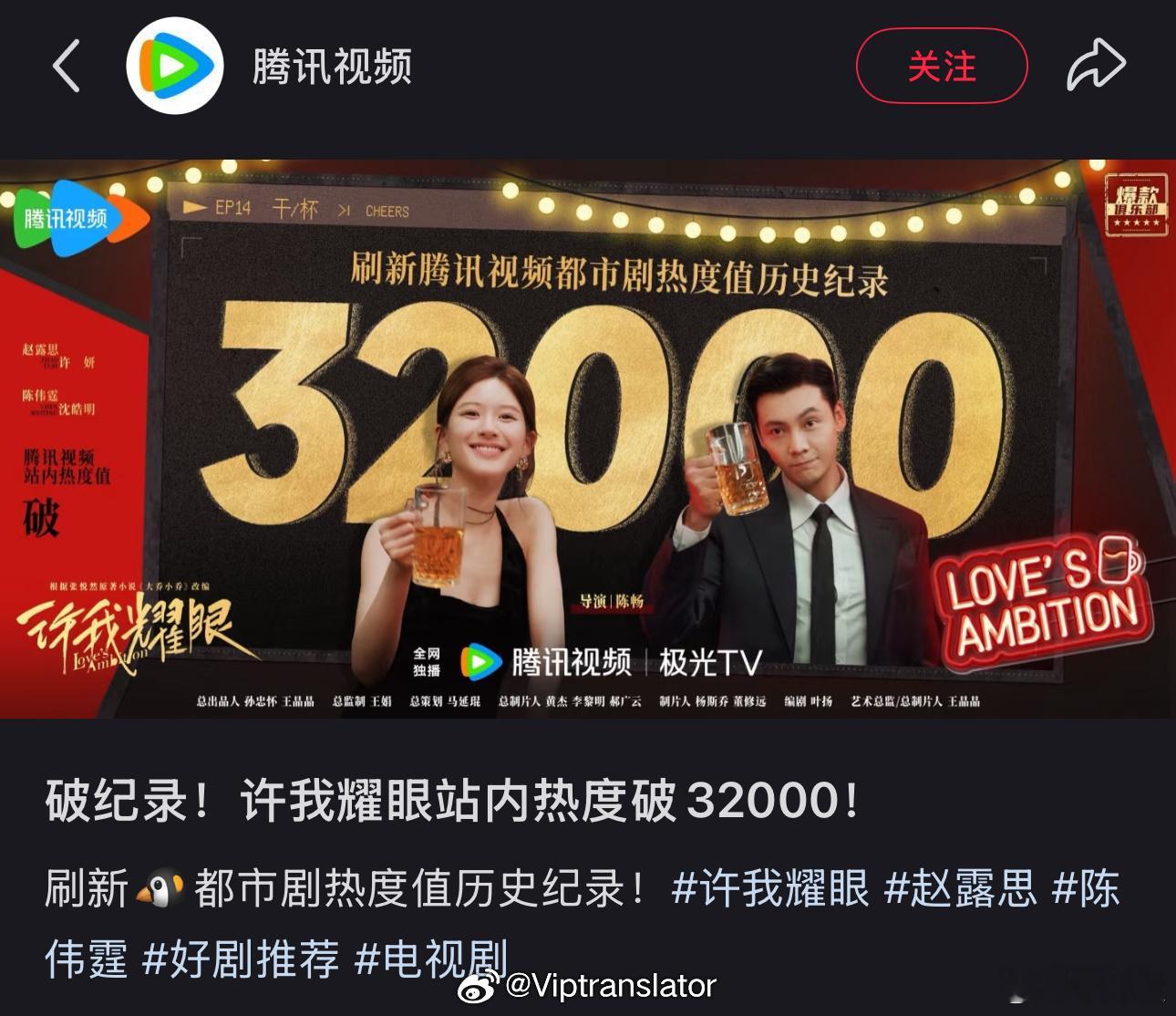 -赵露思和陈伟霆的《许你耀眼》没扑!