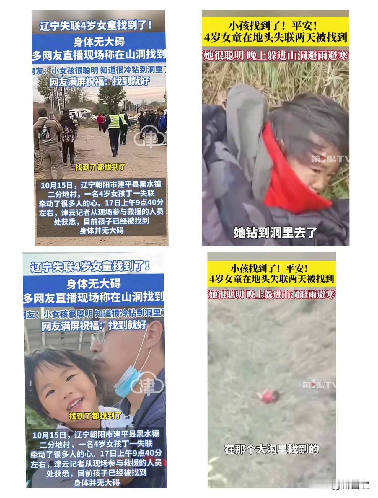找到啦!找到啦! 失联的4岁小姑娘终于平安找着了! 昨晚下着雨,这孩子是真机