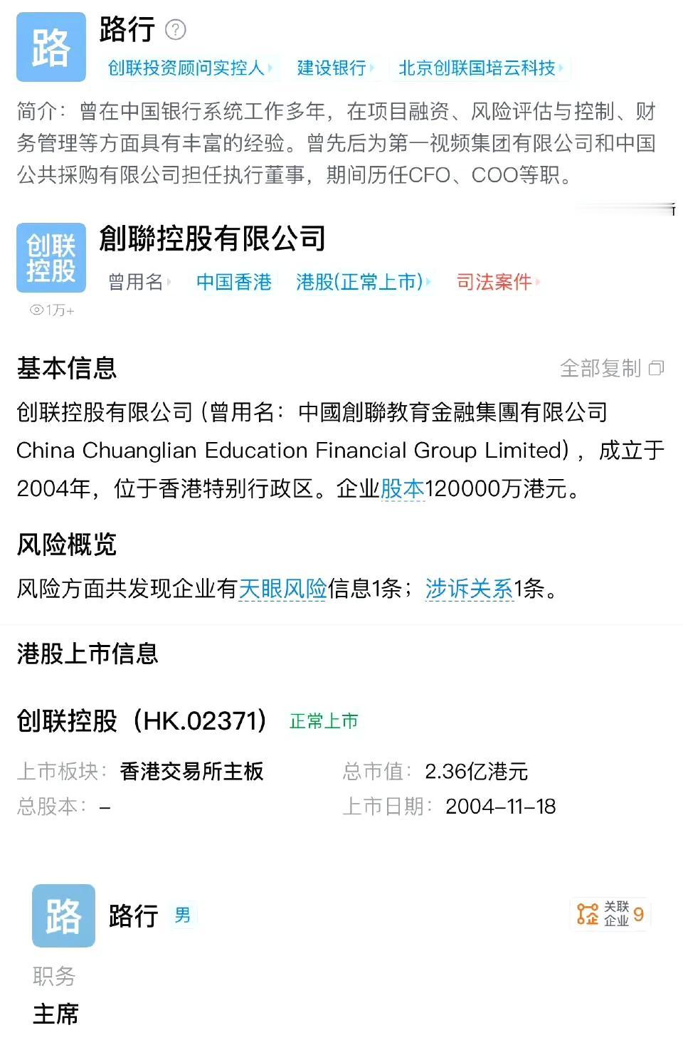 邓莎老公路行在节目里提到了自己的职业,他经营的创联控股有限公司在中国香港上市。 据天眼查财报显示,路行公司2025年亏损七千多万,并且连续三年亏损千万。(p6是2015-2025年的财报) 路行公司2025年亏损七千多万 路行公司连续三年亏损千万
