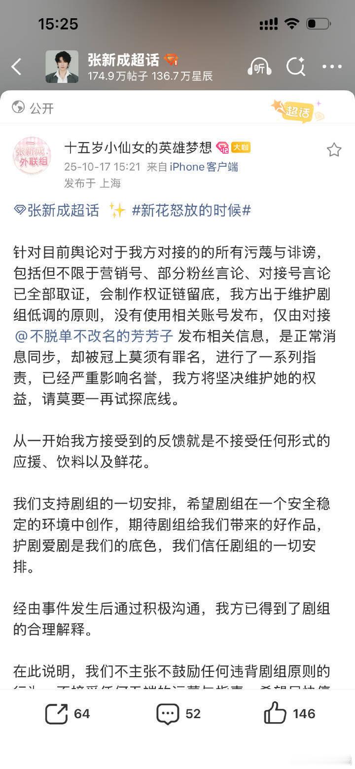 陈晓对接直接喊话张新成粉丝:一个没有官博的剧组,没有官宣的演员,粉丝有什么权利代表剧组发言并道歉?
