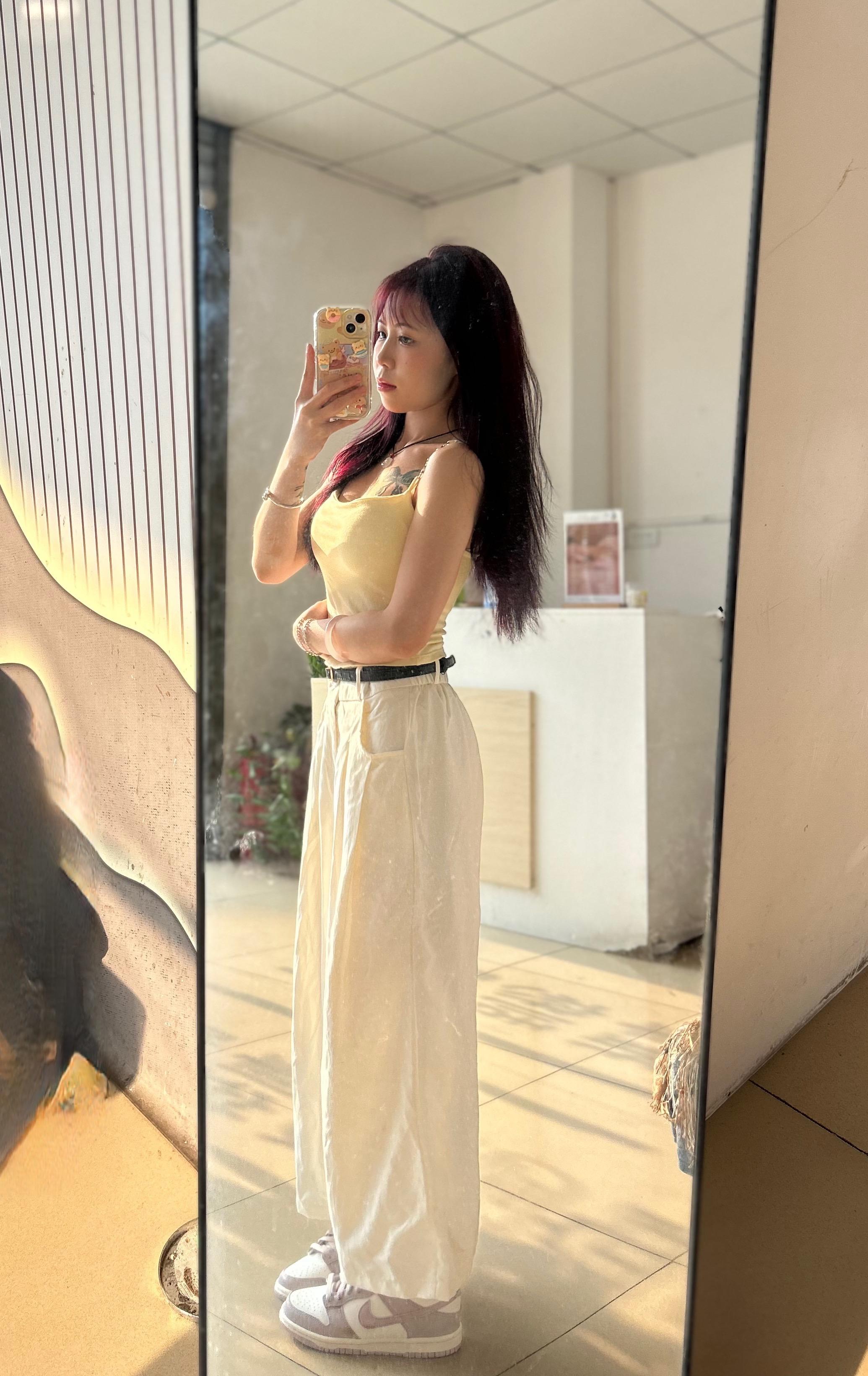 米白裙子一穿,会议室秒变T台。不靠loud颜色抢戏,靠面料说话。真丝垂得