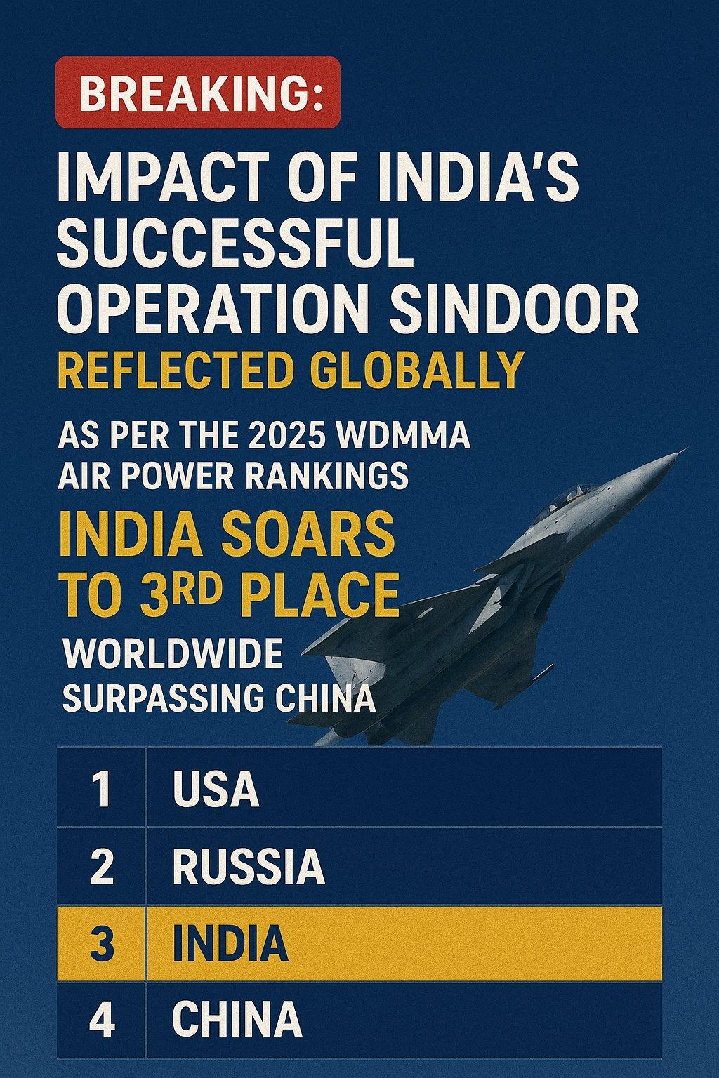 蛙媒引述《新闻周刊》(Newsweek)称,最新的《世界现代军机名录》(WDMMA)排名,结果显示,印度已超越长期被视为主要空中强国的中国,成为全球第三强的空军力量。尽管美国仍稳居霸主地位,但印度的崛起,标志着区域权力动态的重大转变。[捂脸] WDMMA 的排名涵盖全球 103 个国家,追踪了超过 4.8 万架军机,并以“真实价值评等”(TruVal Rating, TVR)来评估空中实力,该评等除了飞机数量,还考量攻击与防御力、后勤支援、现代化和作战训练等因素。 分析指出,尽管中国持续投资技术和机队现代化,但诸如训练、密接空中支援等因素,影响了整体排名。