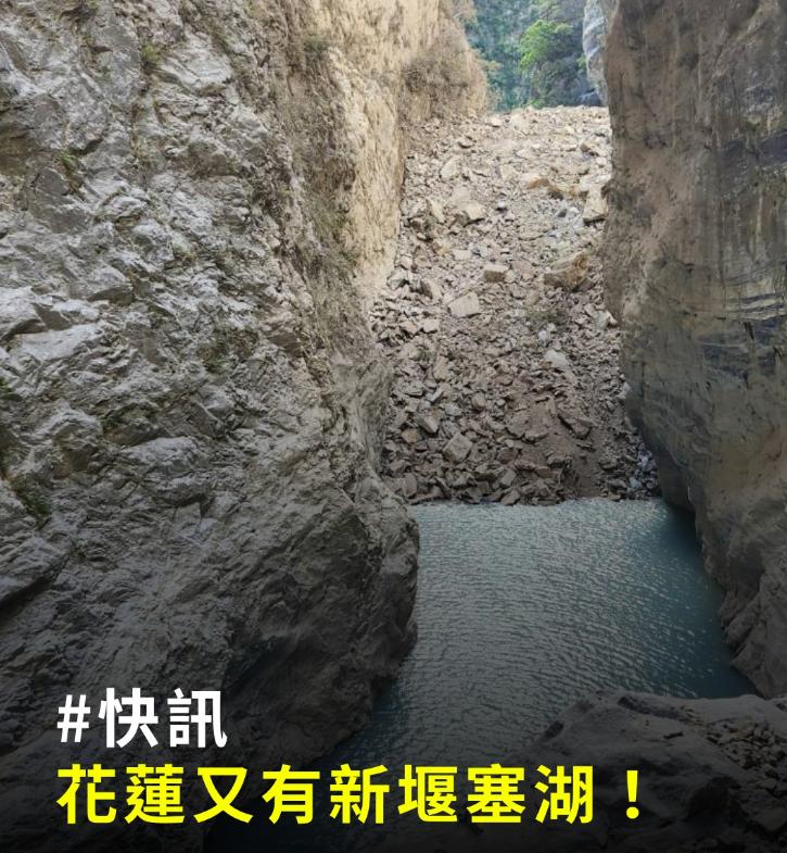 台湾省花莲县秀林乡,发生山壁崩塌阻塞河道形成新的堰塞湖。 花莲县官网今日紧急公告