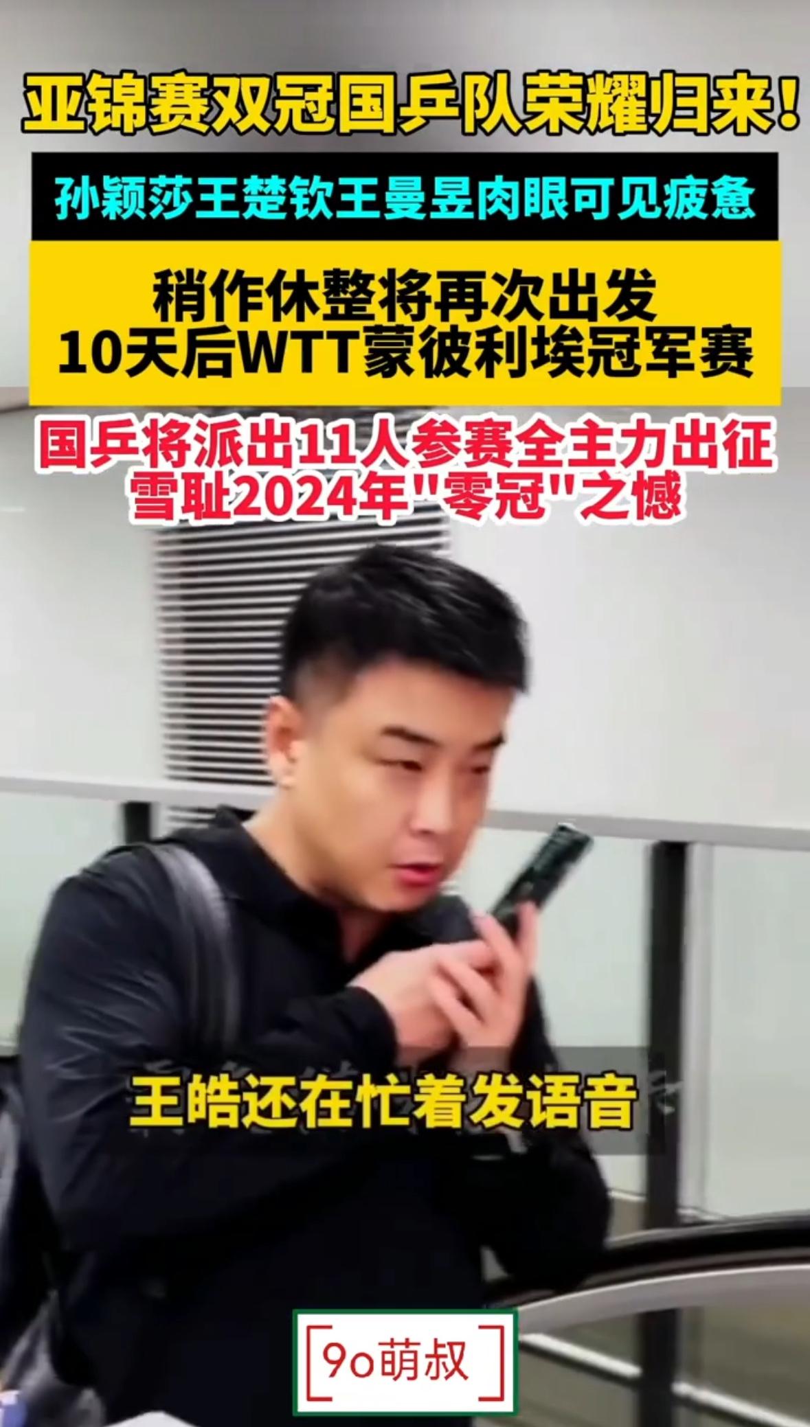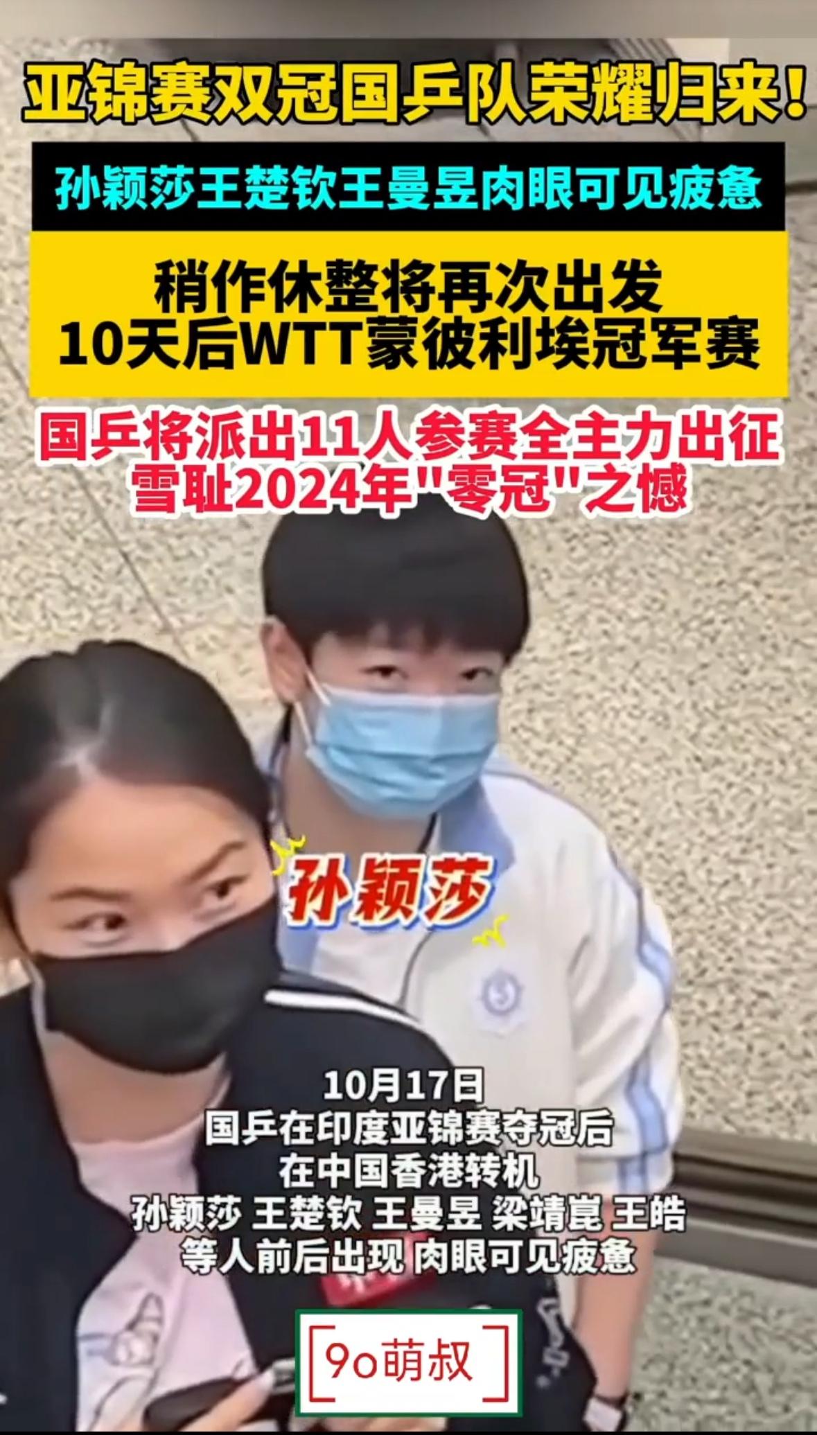 国乒十天后再次出发,本次回国,真的肉眼可见的疲累。一趟印度亚锦赛,直接把这一群小孩子累坏了,后勤和比赛保障工作需要提前安排,改善先进点! 本是正规有权威的比赛,一趟下来,各个的感受都看出来了,虽然赢了,但是很难,有点艰苦了,要是在国内会安排妥当,照顾的很好吧!