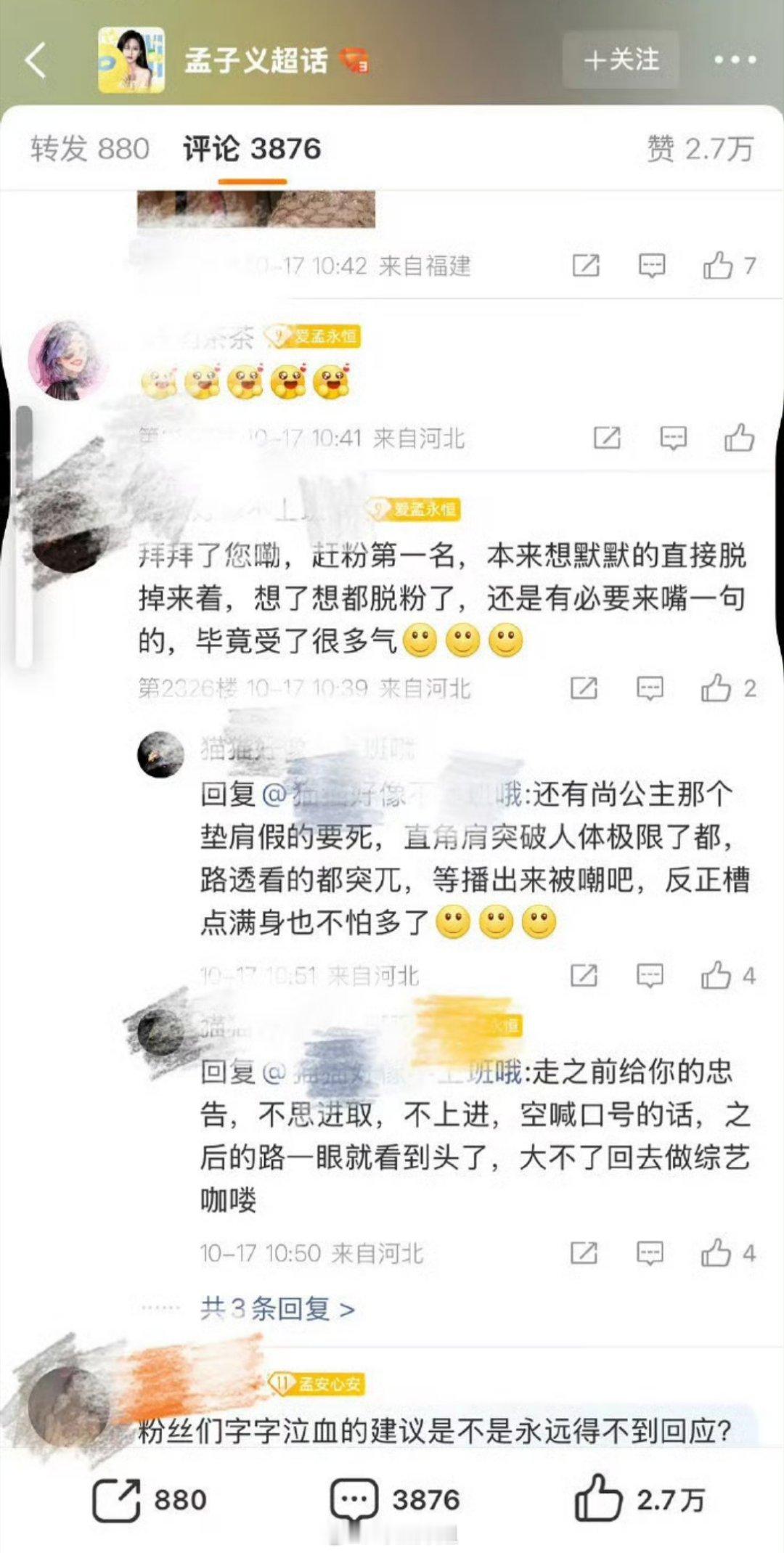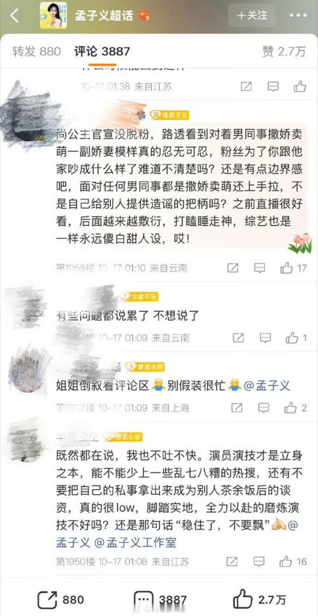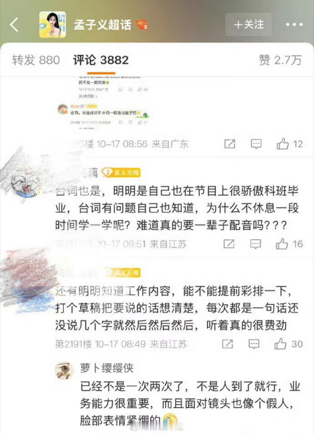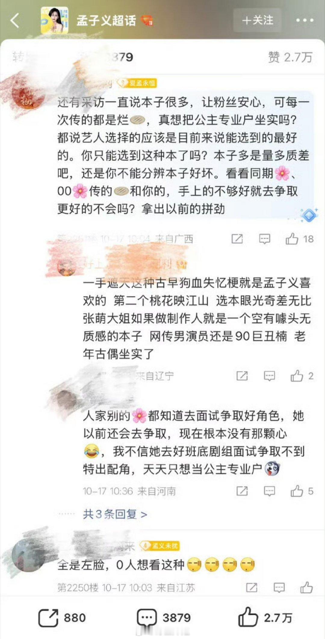 孟子义粉丝都跑到孟子义工作室评论区底下了说孟子义新剧的妆造不行、没有什么亮点,演技也没有多大的进步,好像意见都很大啊,这是咋回事啊?