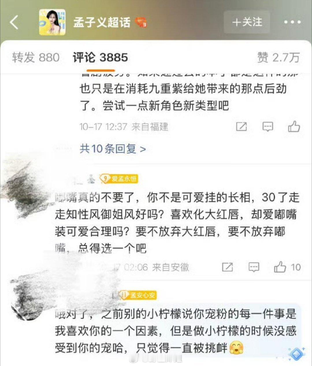 孟子义粉丝都跑到孟子义工作室评论区底下了说孟子义新剧的妆造不行、没有什么亮点,演