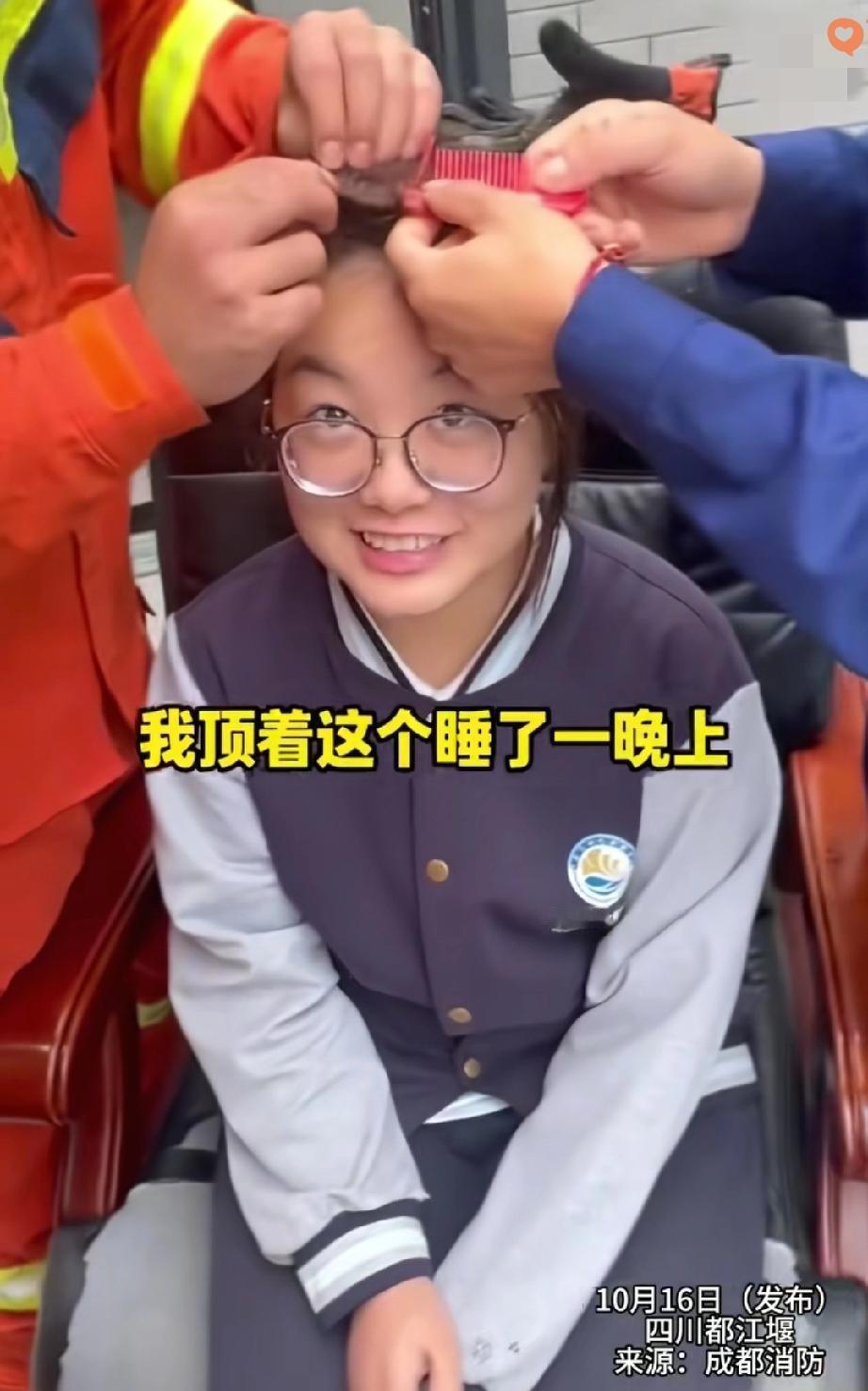 哈哈,这才是真正的“头等大事”! 四川成都一名女生把梳子卡在头发里,居然顶着它睡了一整晚,第二天直接成了校园焦点。 围观同学笑翻,她只能求助消防员。 消防员一边憋着笑一边耐心解救,还叮嘱她“以后好好梳头”。 这事儿看似好笑,其实挺有启发。 很多人遇到尴尬小事时,总想着“自己搞定”,结果越弄越糟。 其实学会求助,不仅能少走弯路,还能收获意想不到的帮助和温暖。 就像这位女生,消防员的专业和温柔,既解决了问题,也化解了尴尬。 生活中难免会遇到各种“小卡壳”,你有没有过类似的经历?当时是怎么解决的呢?
