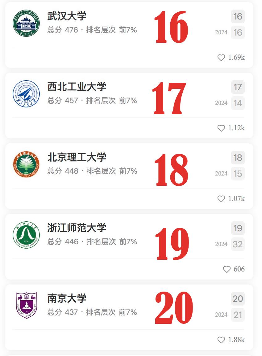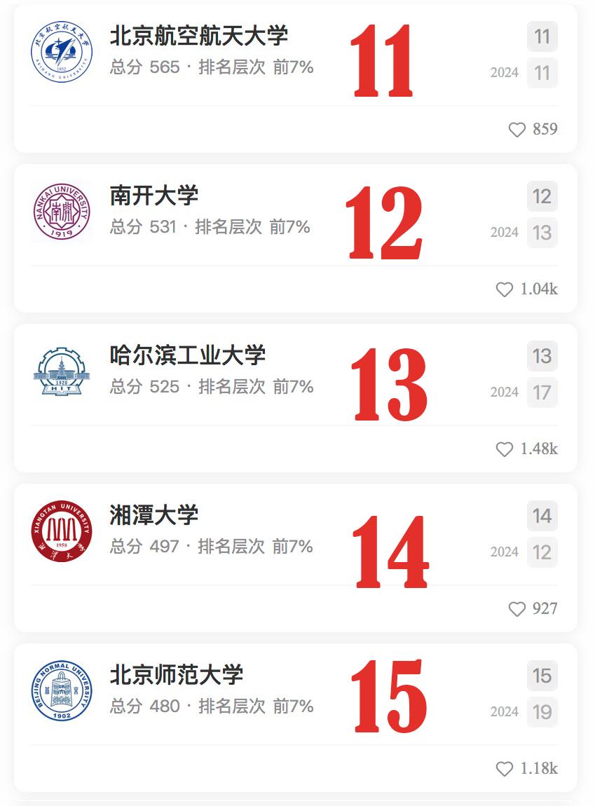 数学学科最厉害的大学排名2025新版来了。对比5年前,变化还是很大的。进步大的和退步大的特点都很明显。 头部点评: 1.北大依旧是一马当先,遥遥领先,不愧是北大第一系。 2.老二依旧是多年不变的复旦大学。 3.清华大学在丘成桐的带领下,近些年清华的数学实力已经站稳第一阵营,经常和山东大学不分高低。 进步大的: 受益于近年来国防军工类大学受到欢迎,生源逐年向好,他们的数学学科也大幅提升。 1.西北工业大学、北京理工大学从五年前的40多位大幅攀升到17、18位。 2.同样国防七校的北京航空航天和哈工大也大大进步。 退步大的: 部分传统985名校出现大幅下滑。 南京大学、中山大学、东南大学都下滑很厉害。