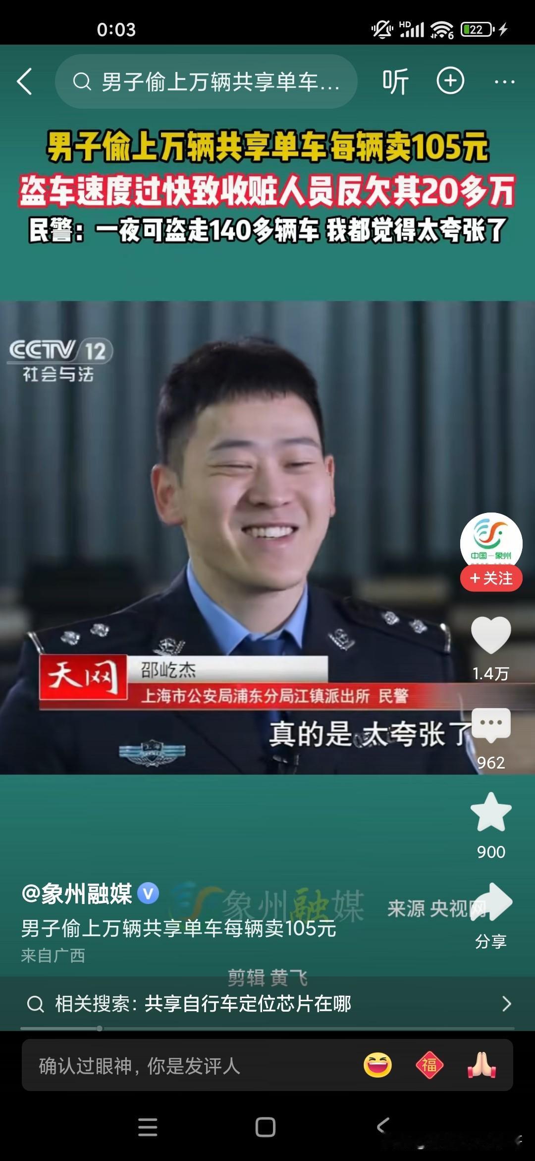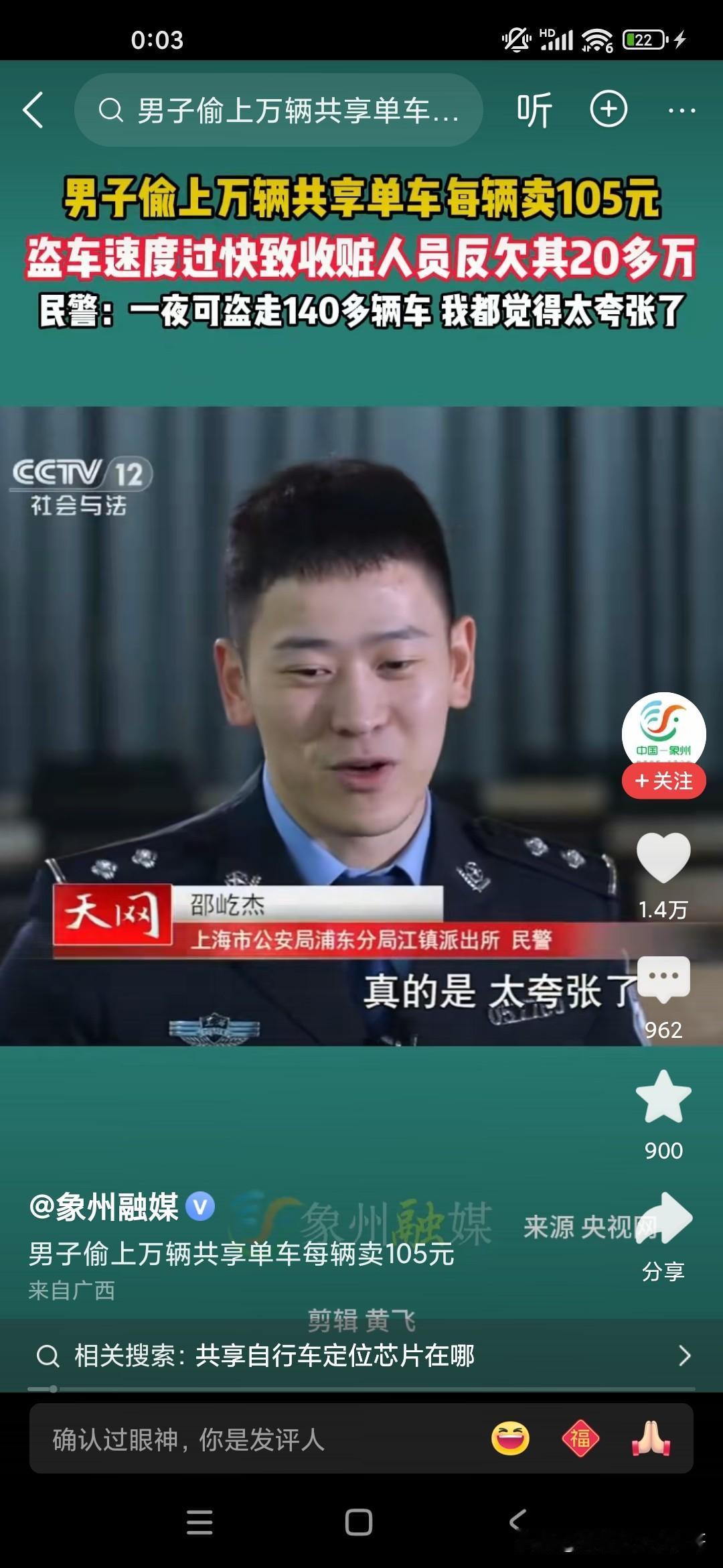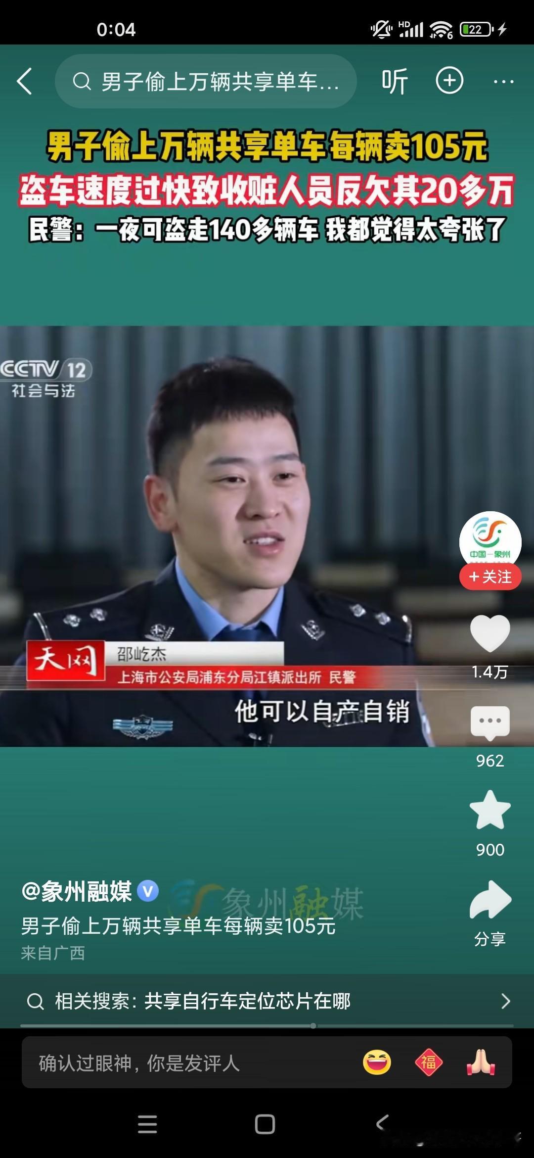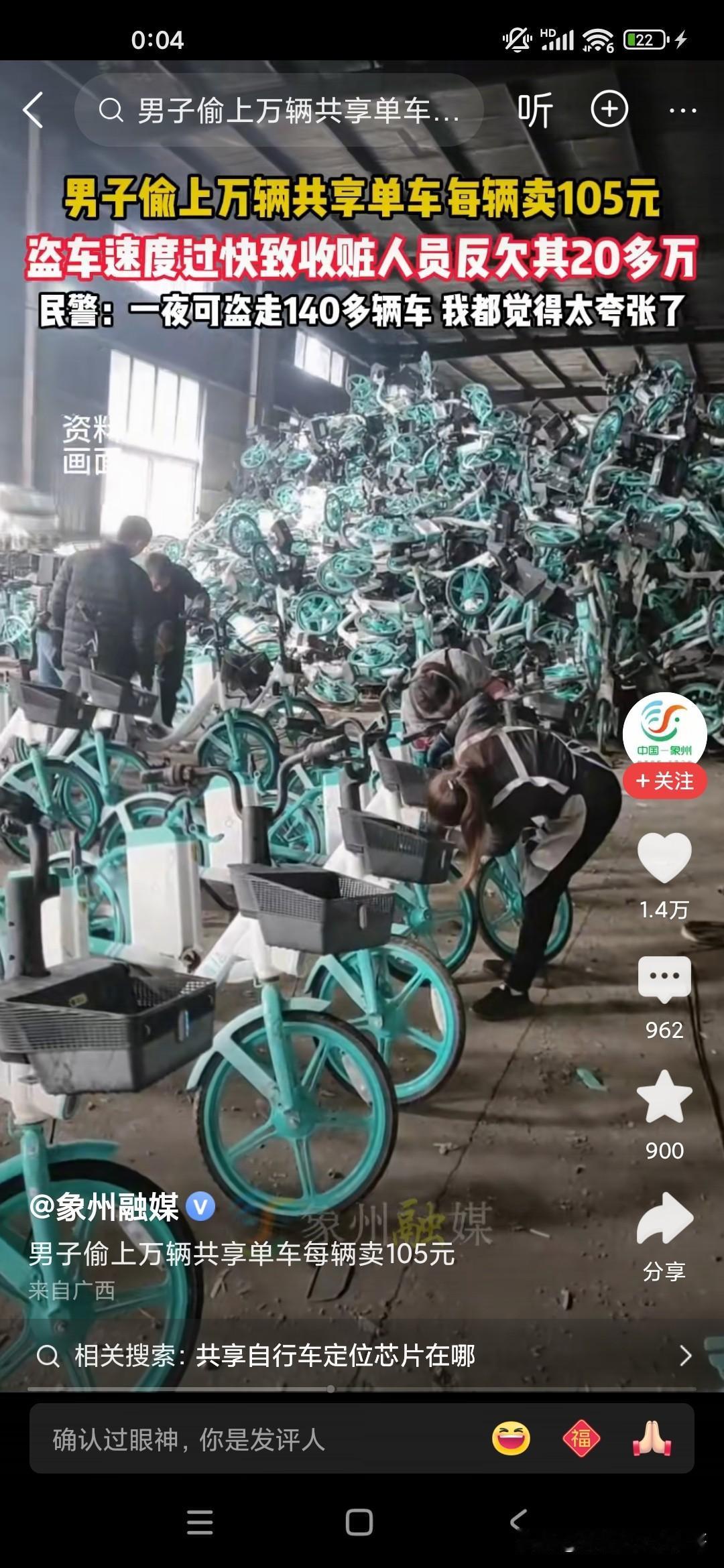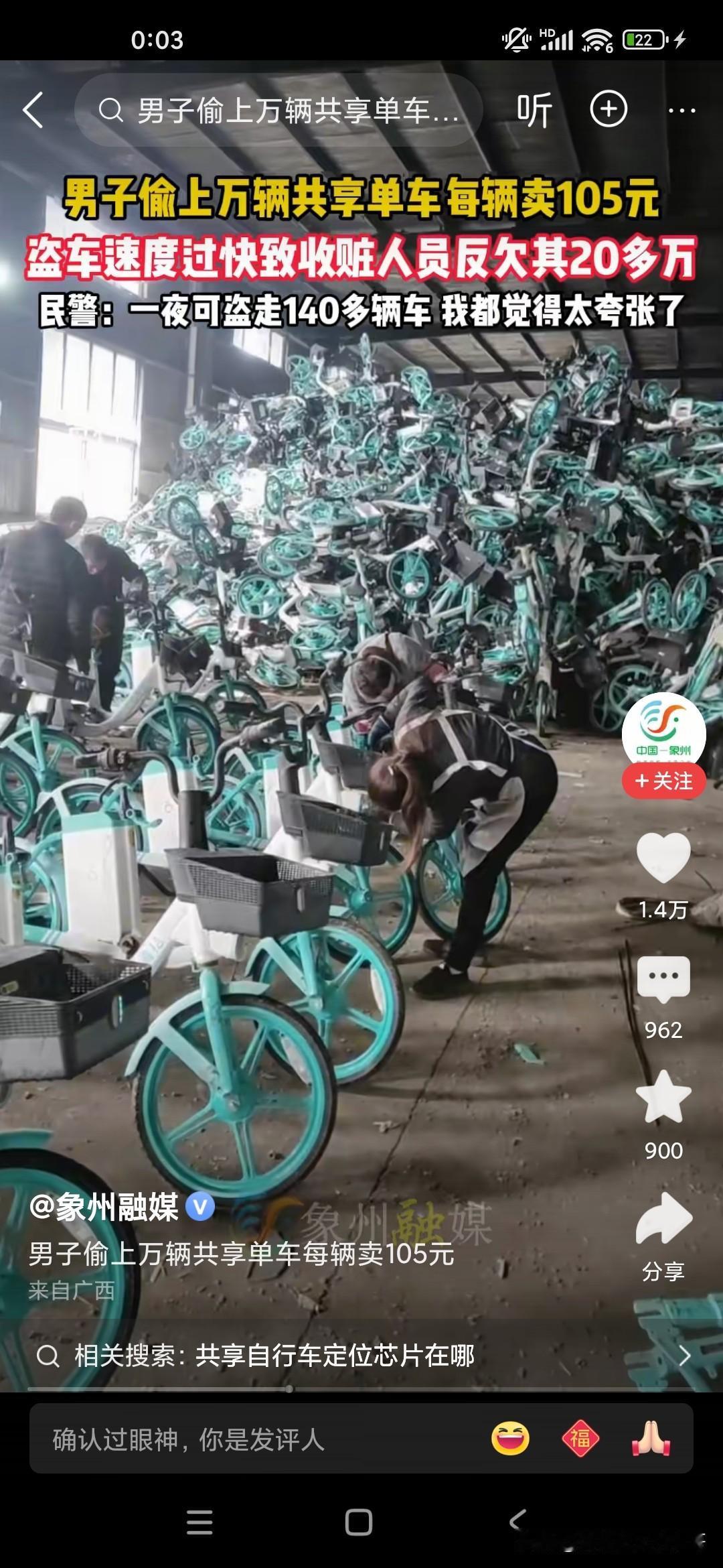 这些世界上真是什么奇人都有,这名男子专门偷共享单车,无论是哈啰还是青桔还是其他品牌的,都照偷不误,而且偷完之后的话,会自己把这些共享单车给拆卸掉,把跟踪记录仪给拆卸掉,把锁拆卸掉,然后再卖给那些有需求的人,如果你在大街上看到有一些大爷大妈或者骑这个共享单车他们用完之后还是直接把它放回家里,有可能有的就是嚣张的或者已经去锁的,最后当然这名男子被抓了,他每辆单车仅卖105元,也没有想到他居然偷了1万多辆!甚至因为投的太快,那些销赃者还欠了他20多万!真是奇才啊!他真的以为我们上海没有监控吗?太蠢了!