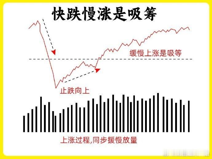 股价处于低位或是上涨趋势的初期,在分时图里,股价短时间大幅下跌,这是主力故意打压股价,随后股价止跌向上反弹很慢,向上的斜率很小,这是主力偷偷的承接抛盘的筹码,整个吸筹阶段,缓慢上涨时间会比较长,而且成交量会比较温和,不会和下跌时候,成交量那么大。