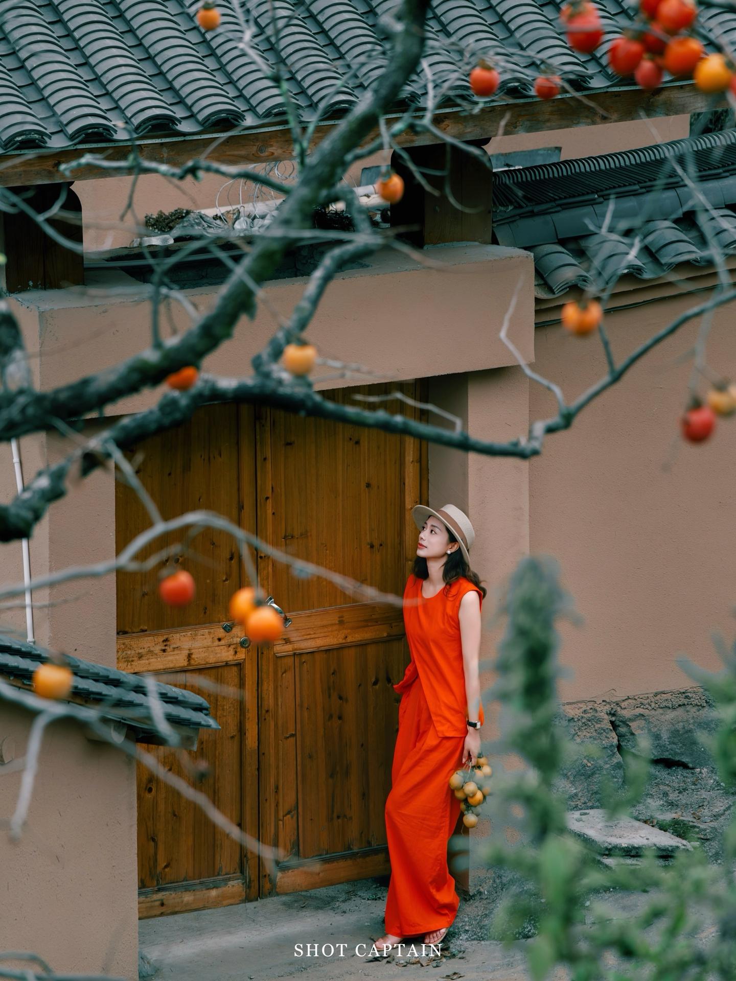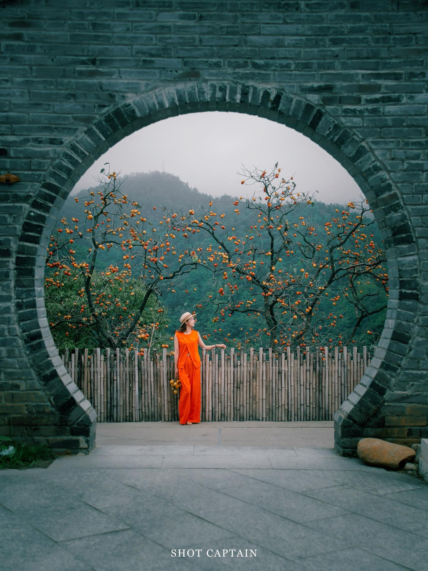 新昌兢山柿子红了月洞门柿林古风大片秋日限定柿林打卡地江浙沪自驾柿子村兢山柿子拍照机位