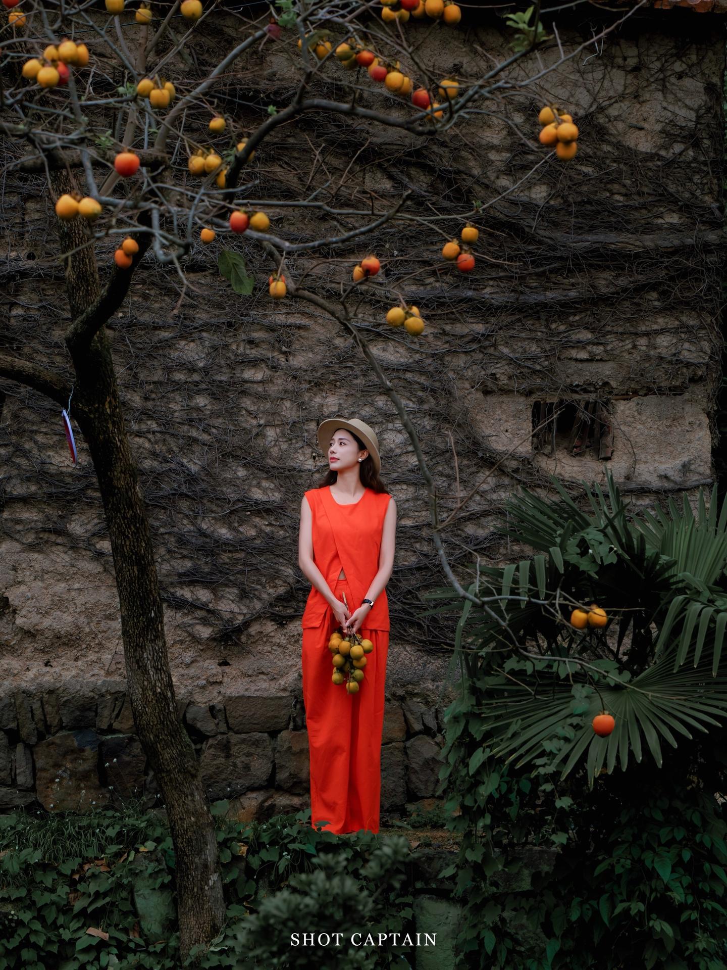 新昌兢山这配色才是秋日顶流!📒新昌兢山柿林红透如灯笼,穿橙色衣服打卡堪称神来之笔——与红柿、秋景撞出温暖美拉德色系,氛围感拉满。月洞门是必拍C位,框住橙衣身影与枝头红柿,中式美学感十足。带个竹篮装柿子当道具,在篱笆墙或好柿咖啡露台拍,随手都是大片。村口买串新鲜柿子,甜香混着烟火气,秋日仪式感拉满。出镜: