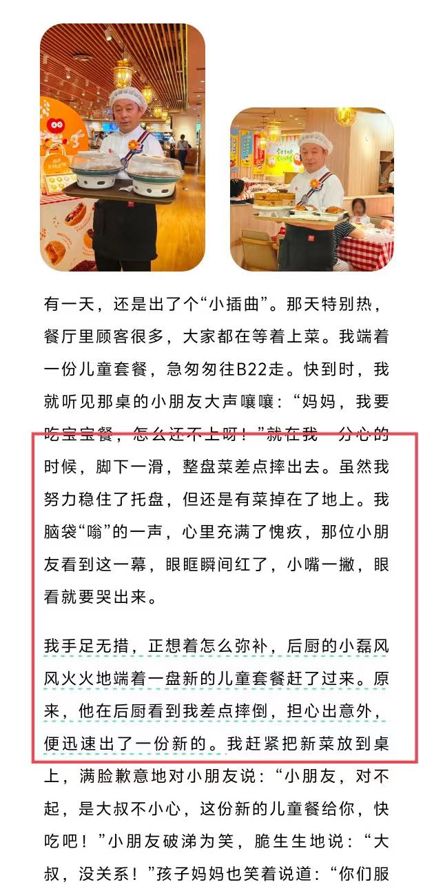 重度昏迷阿姨出院后就迫不及待地去西贝吃饭,里面到底放了什么,让人这么念念不忘? 再加上这个,西贝故事系列已经有十个了: 1、 诡异的抱腿娃娃 2、赌气的六百餐费 3、失联的房东大爷 4、西贝大战厌食症 5、千元横财从天降 6、饥饿的建材团队 7、百万身价洗碗工 8、无声的神秘订单 9、起死回生任正非 10、初愈病患捧西贝 期待他们的下一个温情故事!