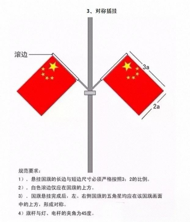 有一位妈妈带孩子去烈士公园游玩的时候,发现国旗的方向挂错了。 很多人看了半天,都没有发现错在了哪里。 其实,国旗有好多种挂法,最常见的是以下四种:单独悬挂、横向悬挂、对称插挂、对称悬挂,每一种都有严格的规范要求。 图片中(图一、二)明显是属于对称悬挂,这位妈妈说的没错,国旗的方向确实是挂错了。 国庆临近,很多地方都会开始挂起国旗。如果遇到这种情况,大家刚好可以和孩子们科普学习一下哦!