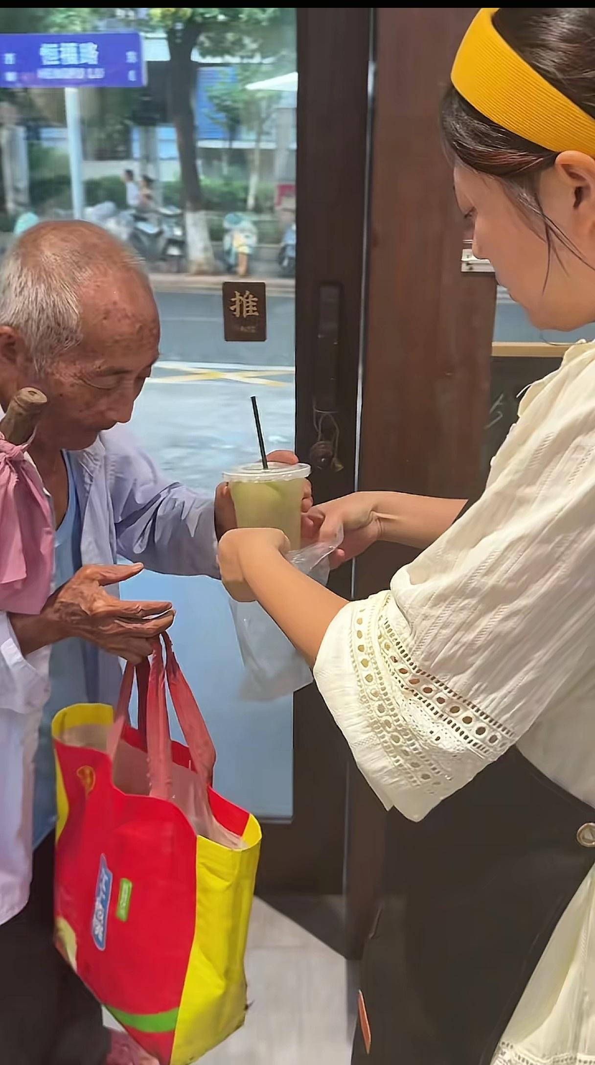 看哭了!一位穿着十分朴素的老爷爷走进一家饮品店,从兜里掏出一张纸条,递给了营业员