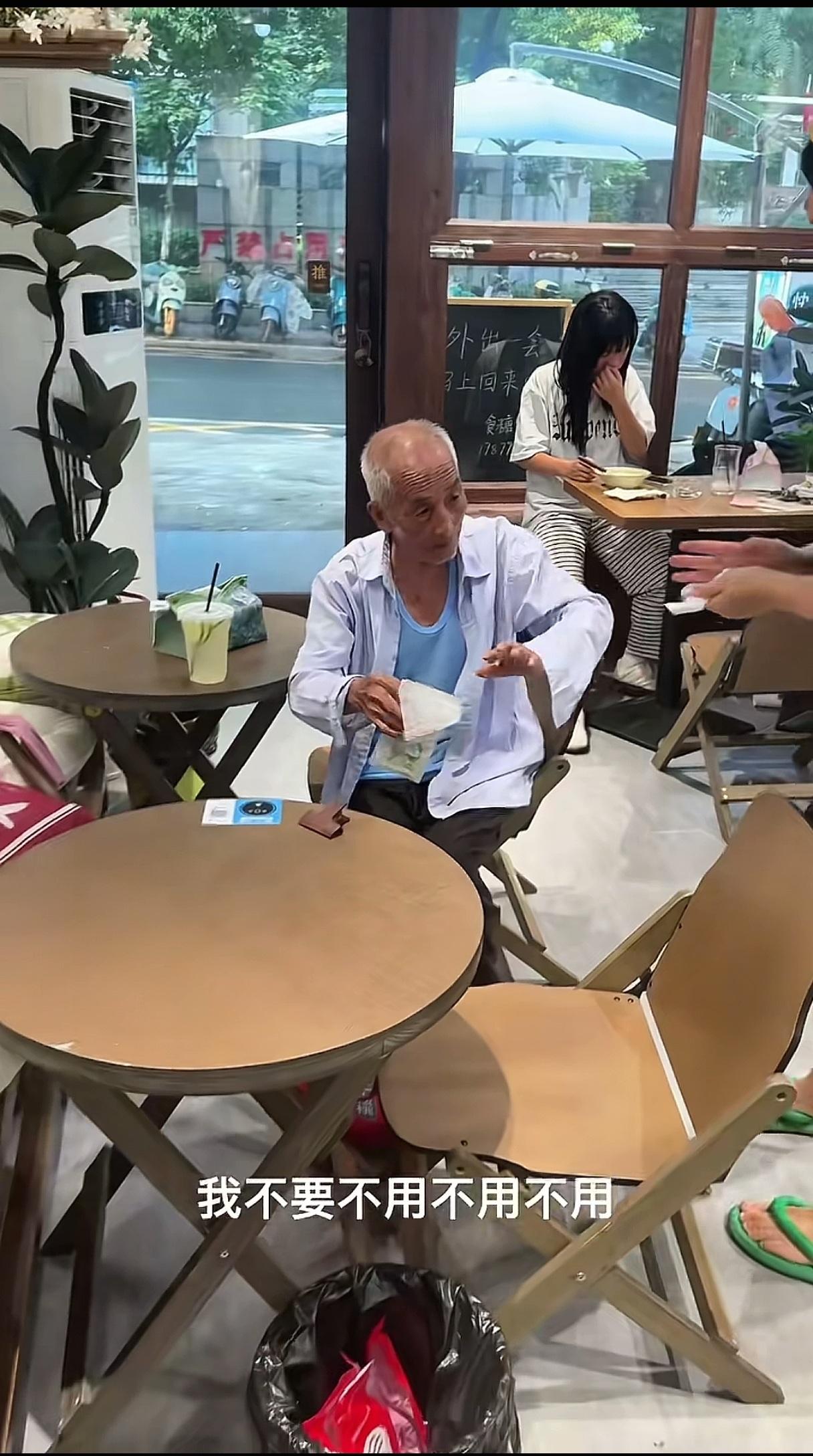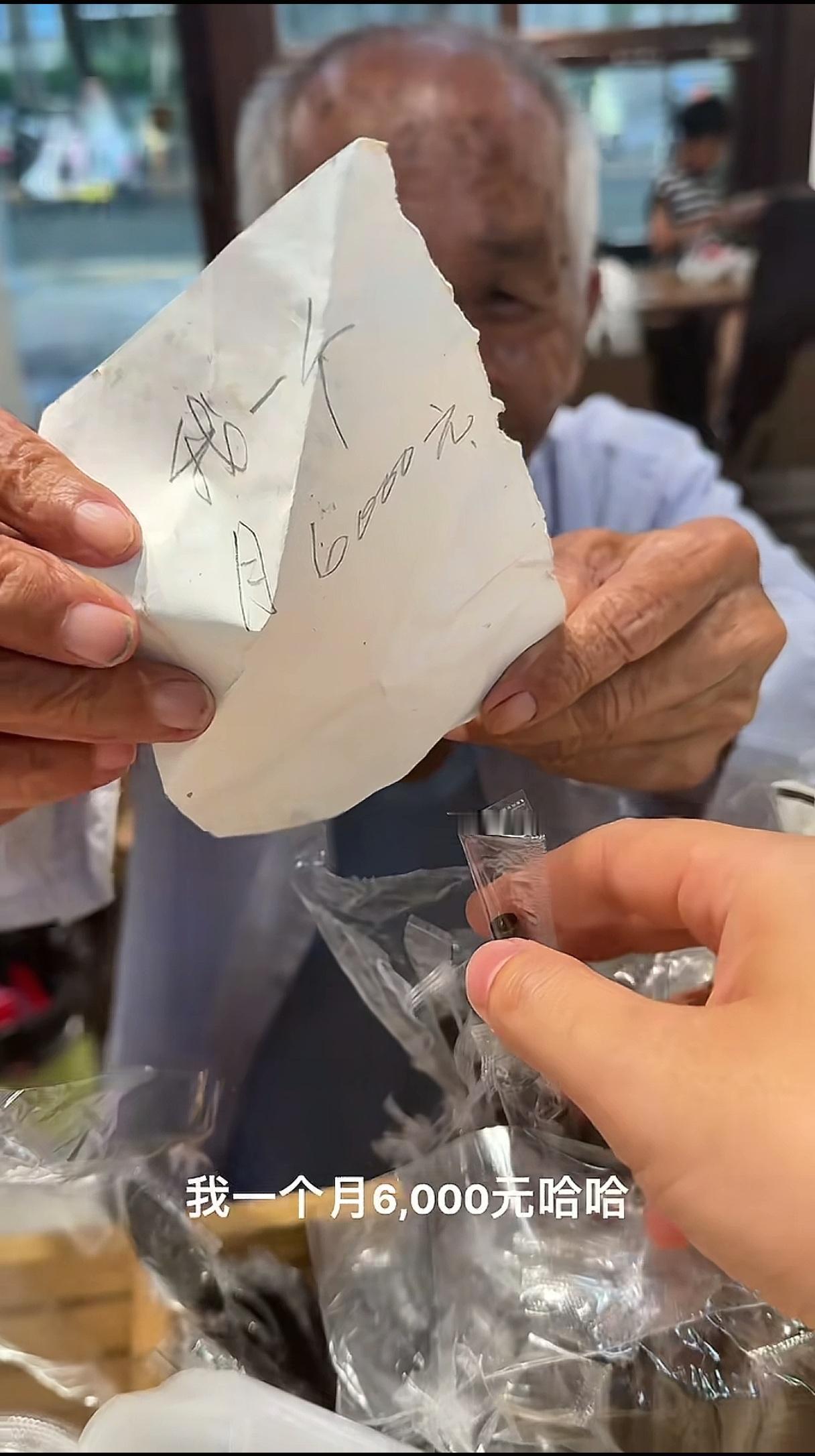 看哭了!一位穿着十分朴素的老爷爷走进一家饮品店,从兜里掏出一张纸条,递给了营业员。 女子好奇地接过纸条,只见上面写着这样一段话:尊敬的营业员同志,下午好!上次,我第一次来你们店时,你很有感情叫我爷爷,感动了我的心情。 接着,老爷爷看着菜单,给自己点了一杯柠檬水,营业员贴心地提醒他:“这个是冰的,您能喝冰的吗?” 柠檬水做好之后,营业员给老爷爷端过去,就看到老爷爷从一个塑料袋里掏出钱,准备付钱。营业员赶紧摆手表示,这杯柠檬水免费请老爷爷喝的。 当营业员回到岗位上,只见老爷爷又从座位上起身走过来,又递上了一张纸条,上面写着:我一个月6000元。 这次营业员懂了,老爷爷是怕她不收钱,特意来告诉她,他一个月退休金有6000元,应该收下他的钱。 看到这里,营业员笑了。 她并不是笑自己的工资还没有老爷爷的退休金高,而是一开始以为他是一位孤寡老人有点难过,但是看到他说一个月六千块,瞬间为他高兴,觉得好开心。 不用担心老爷爷吃不好穿不暖了,真好!