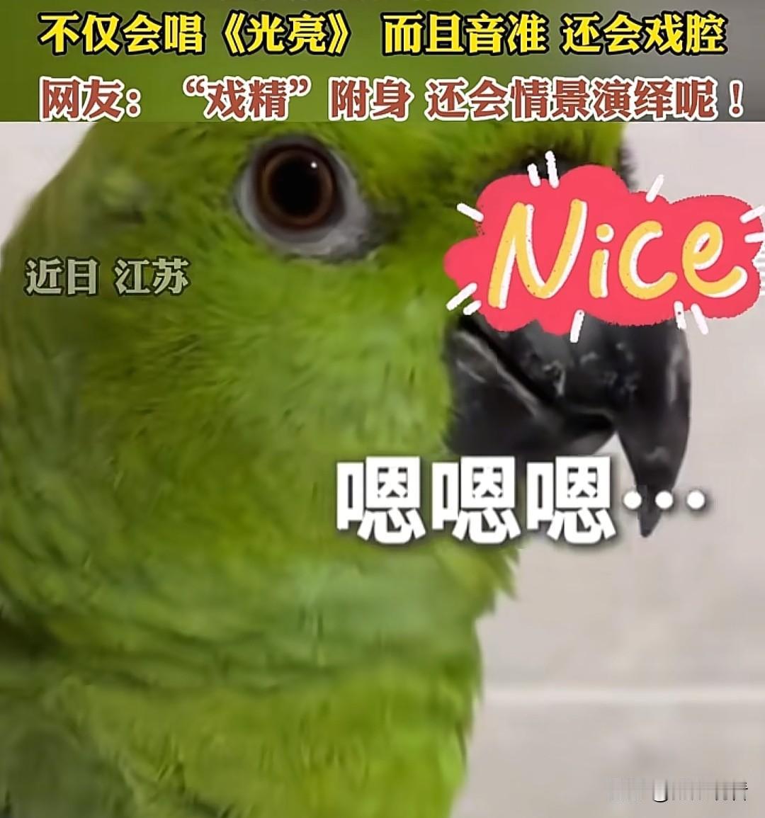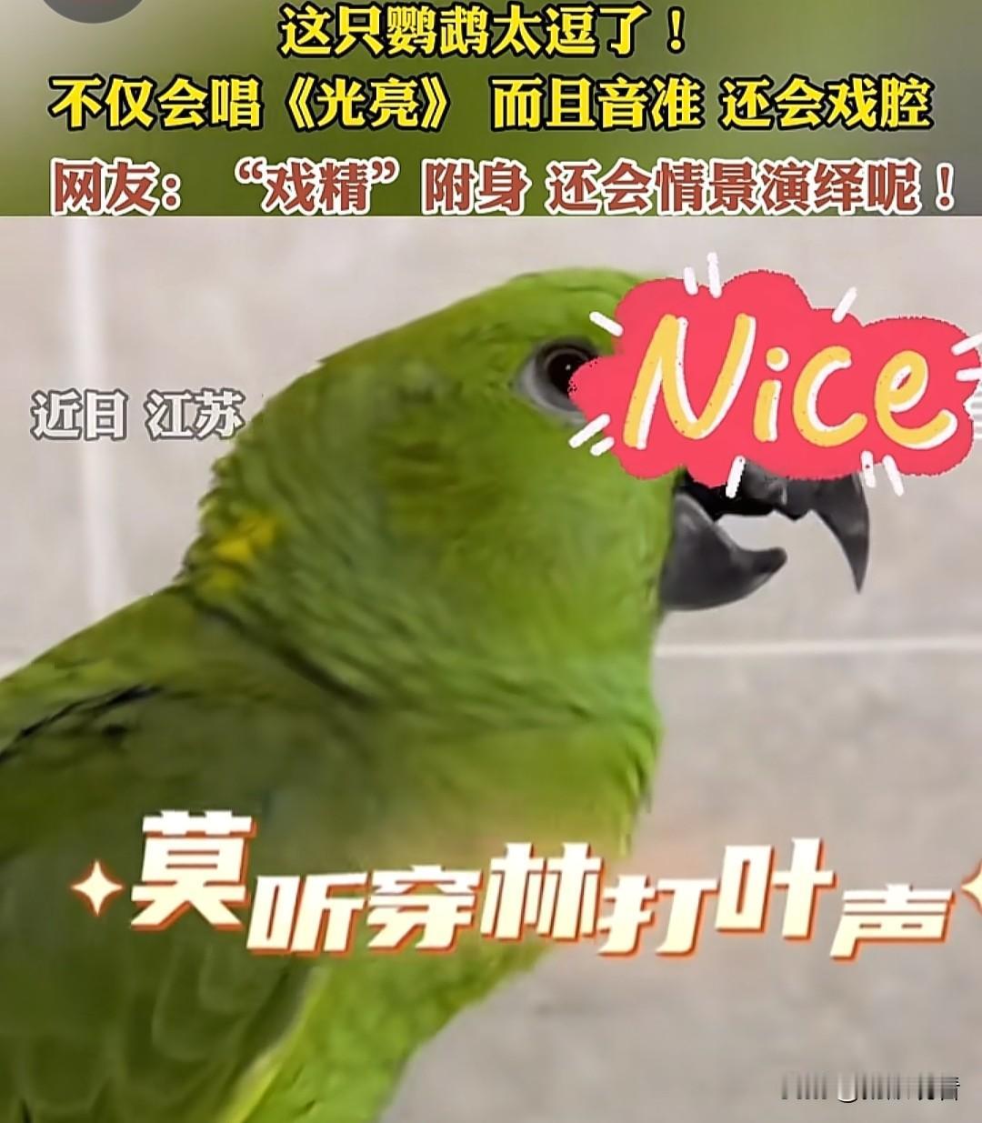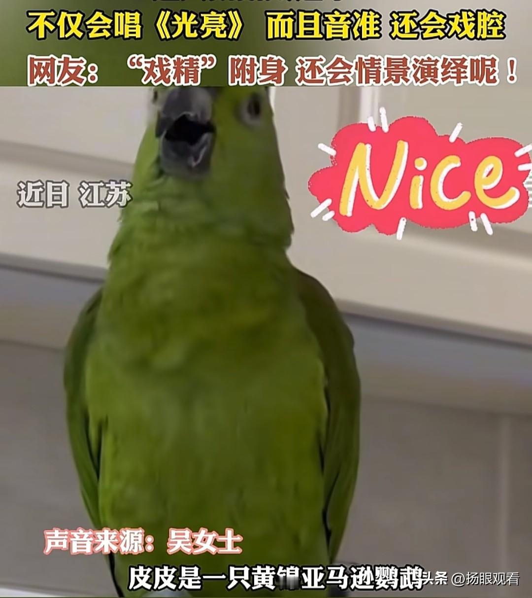 江苏惊现戏精鹦鹉🦜这只叫皮皮的黄锦亚马逊鹦鹉也太绝了吧! 它居然会唱《光亮》,关键是音准超在线,还自带戏腔buff! 不仅唱歌好听,居然还会情景演绎,妥妥的“戏精”本精没错了😂 这鸟界实力派+演技派,我直接原地圈粉! 你们见过这么有才艺的鹦鹉吗?