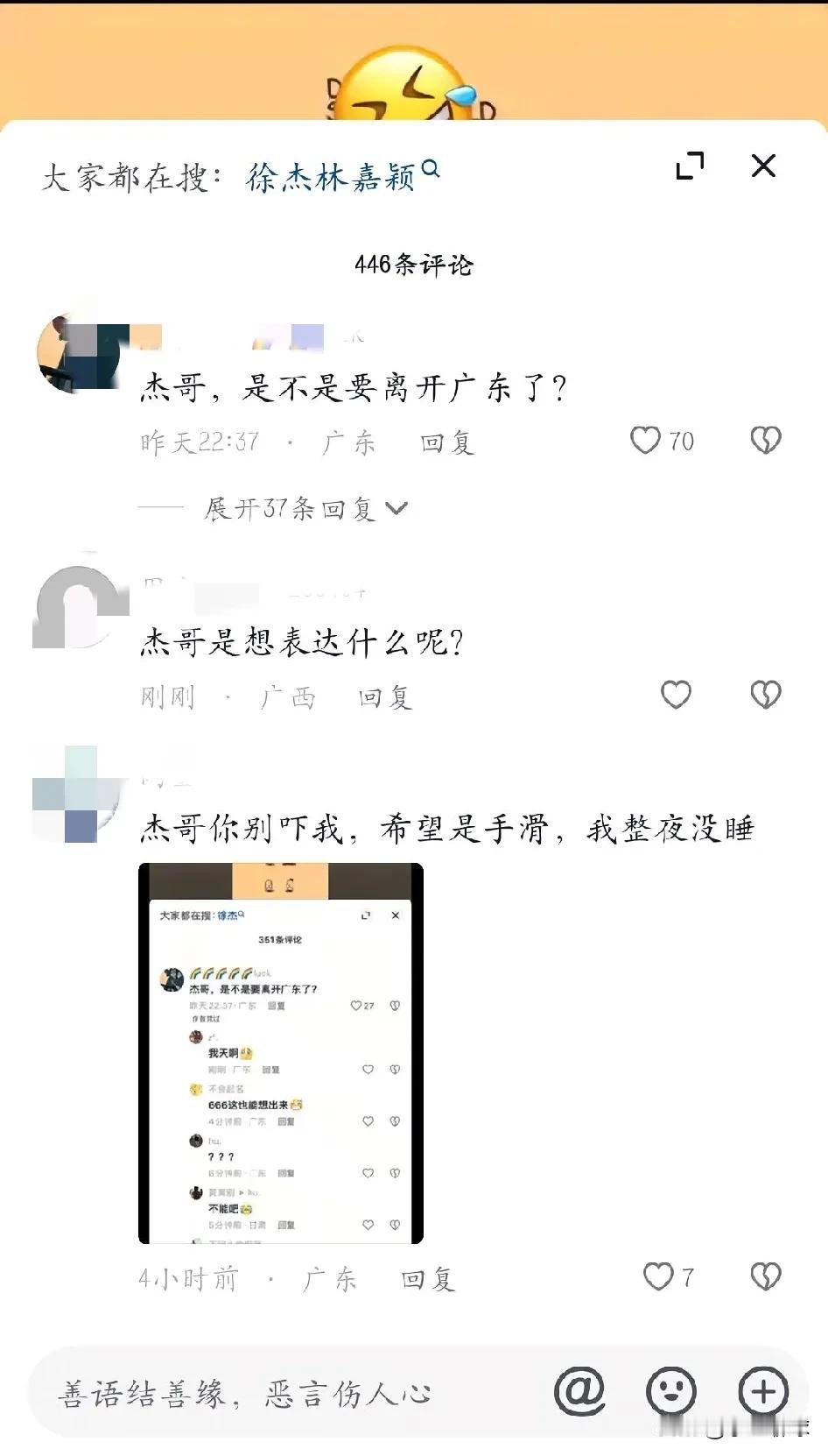 徐杰取消点赞争议评论,疑似本人回应离队传闻 广东宏远队的当家后卫点赞离队评论的风波刚发酵起来没多久徐杰自己就取消了对该条评论的点赞,现在再去看已经没有了作者点赞。 而另一名球迷也贴出了疑似徐杰本人回应的对话,对话内容不但否定了离开广东的传闻更是对点赞做出回应“点赞不是要离开”,最后还发了调侃的“哈哈哈”。 虽然是疑似徐杰本人回应,但从徐杰取消点赞结合该对话中的徐杰同款头像加之该球迷的铁杆程度来看,很大概率就是本人回应,所以广东队的球迷们也可以放下一定的心来,前面我就说过徐杰被交易概率是比较低的。 而从徐杰素日球场上沉稳的表现来看,之前的点赞行为很可能是手滑,当然也不排除另一种可能,就是每年夏天各队的当家球星很多都会“被外界交易”多遍,徐杰也不例外,这次的点赞行为也可能是一个反讽的举动。 徐杰 夏日生活打卡季