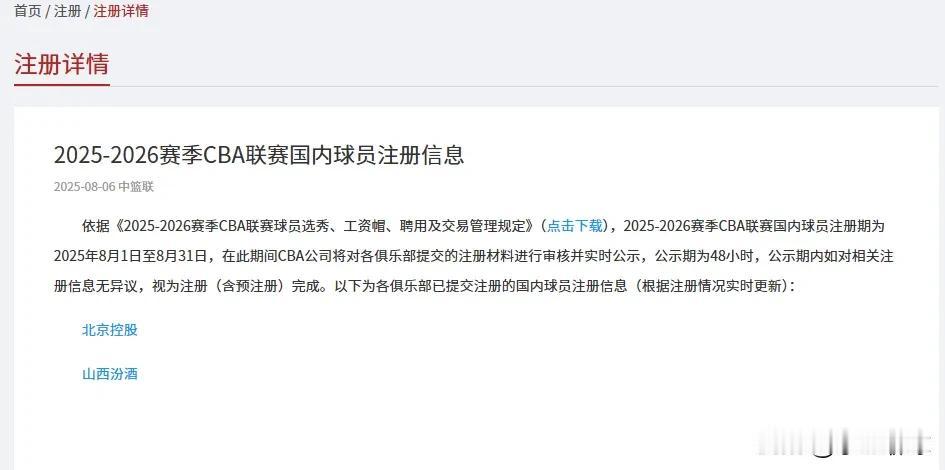 倒计时7天,即将尘埃落定 距离CBA国内球员注册期就剩7天,目前CBA官网的注册信息只显示山西队和北京队有提交球员注册,其中备受关注的北控队球员陈国豪还没有被注册。 关于陈国豪转会的消息在这个夏天可谓是层出不穷,看起来广州是很有意向引入他,但这两天又传出广东队对他也有意向,目的是为了拿他去和其他队做交易。 另外备受关注的还有辽宁队的张镇麟、新疆队的赵睿、广州队的焦泊乔、广东队的徐昕,这些有实力的球员或者影响力大的俱乐部成为了最近各网络平台上的香饽饽,被提及次数多之又多,球迷们的心也随着各种消息浮浮沉沉。 说实话,虽然注册时间还有,但也进入了倒计时,今天是25号,虽然距离31号还有7天时间,但实际时间只剩下5天,因为30号和31号是周末,CBA公司大概率不会加班,所以留给各俱乐部的时间不多了。 但这对于球迷而言是一个好消息,看各种转会消息看了一个夏天,这下终于是快尘埃落定了,很快就会是“悬着的心终于死了”或者“终于可以放下心来了”。