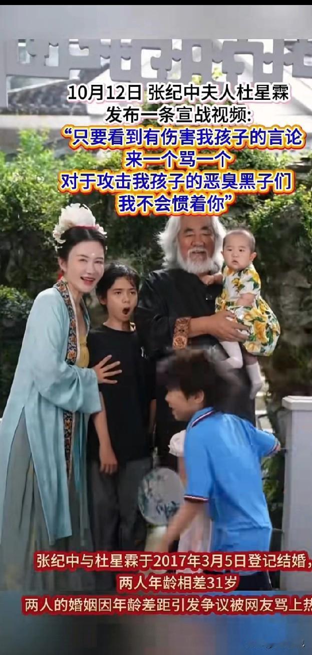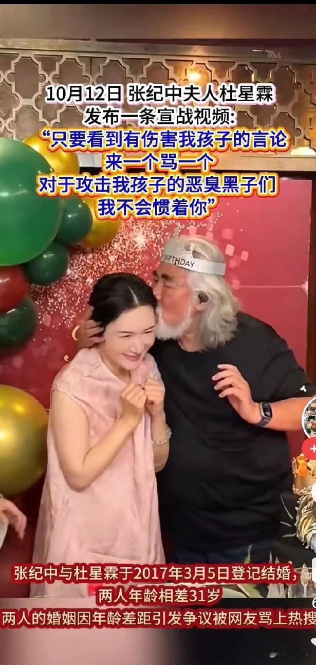 既然蓝战非因为他的网络炫富以及宣扬享乐主义和淡化婚姻违反了平台规则,所以官方给予了一定的惩处,那么张纪中的网上炫富,和相差31岁的爱妻各种的秀恩爱,博大众眼球。是否官方也应该给予网民正确的引导呢? 这个相差31岁年纪的婚恋观,我们不说他是头婚,孩子这么小,年纪这么大,这种不良的价值观和婚姻观在平台上赤裸裸的炫耀,是想做广大的青少年模范楷模吗?孩子,家庭,爱人这都是自己私事。爱情是自由的,我们无需过多的指责苛责,有供求关系的我们也不会谈论到底是否为了爱情。不管你们是真情所爱也罢,贪财好色也罢,这些都本无可厚非,但不要利用网络平台过多的占用公共资源来炫耀,给公众添堵,因为他炫耀的不是他的爱情,而是他的权力财富。假如是一介草民,生活处在温饱之中的大众,您在这个年龄能得到这么大年龄差的爱情吗?做人低调谦卑,简单平和才是最高的境界。