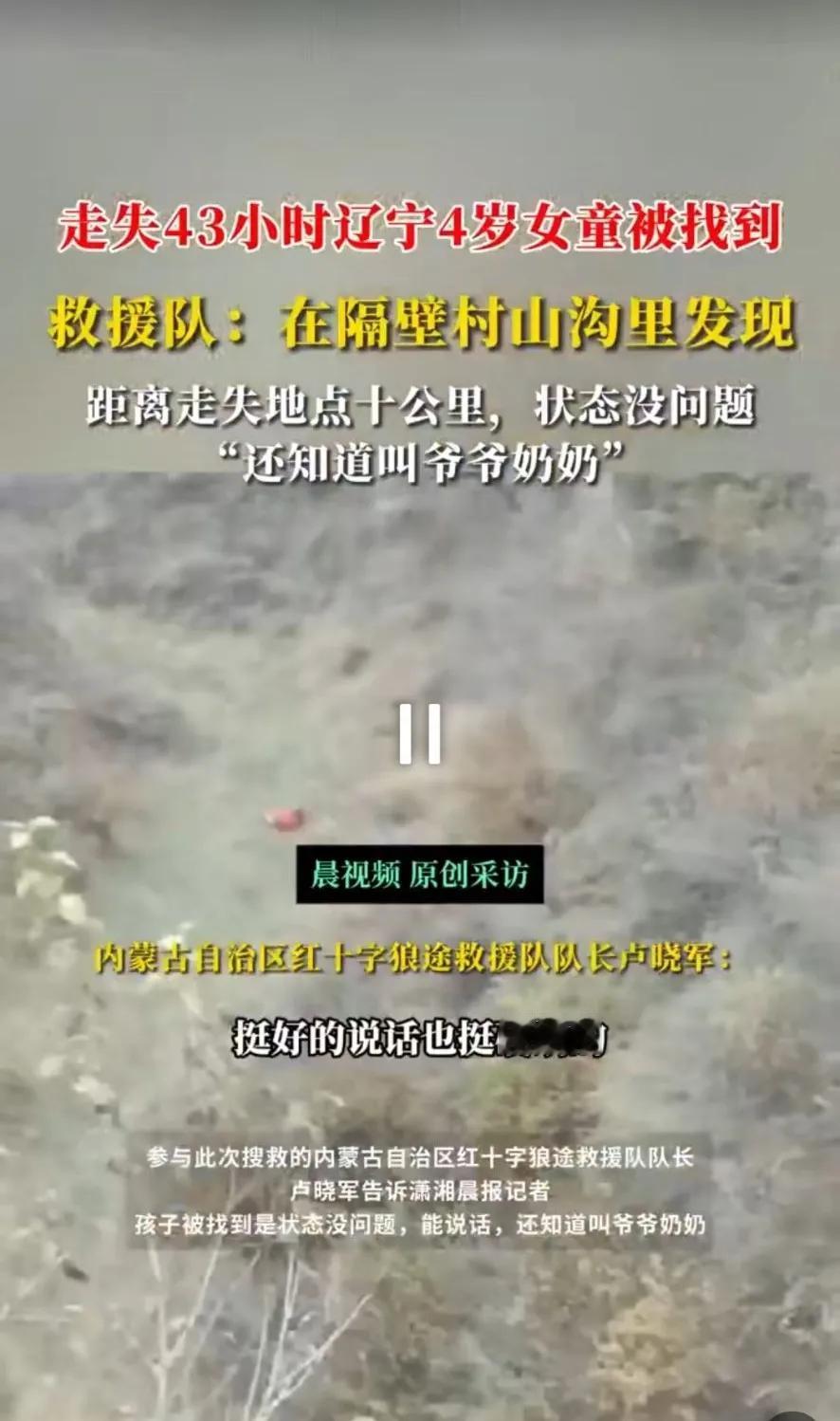 不管怎么样,这算今年众多悲剧中的一个好消息! 车窗被摇下一半,孩子不见了!爷爷奶奶瞬间腿软,4岁的丁一竟在零下的寒夜里,独自爬到了十公里外的山沟?” 整整48小时,上万人的心被揪着!救援队拼了!无人机热成像扫过悬崖,警犬嗅遍草丛,甚至因为两只老鹰盘旋,连鹰巢都没放过。找到孩子时,她浑身湿透蜷在沟壑里,却奇迹般清醒着,还能喊出爷爷奶奶。救援队长红着眼说,孩子意志力强,喝了不少水,还啃了两块蛋糕! 这事儿是众人齐心协力的救援奇迹,但深处也敲响警钟。农村留守儿童的安全网到底有多脆弱?爷爷奶奶干农活,孩子锁车里看似安全,可山地沟壑深达20米,成人掉下去都难爬。幸好这次结局暖心,但下次呢?孩子的韧性救了她,但社会的韧性不能只靠奇迹。 还有,阴谋论者们先闭嘴好吗?但愿每个孩子都能在安全网里长大。