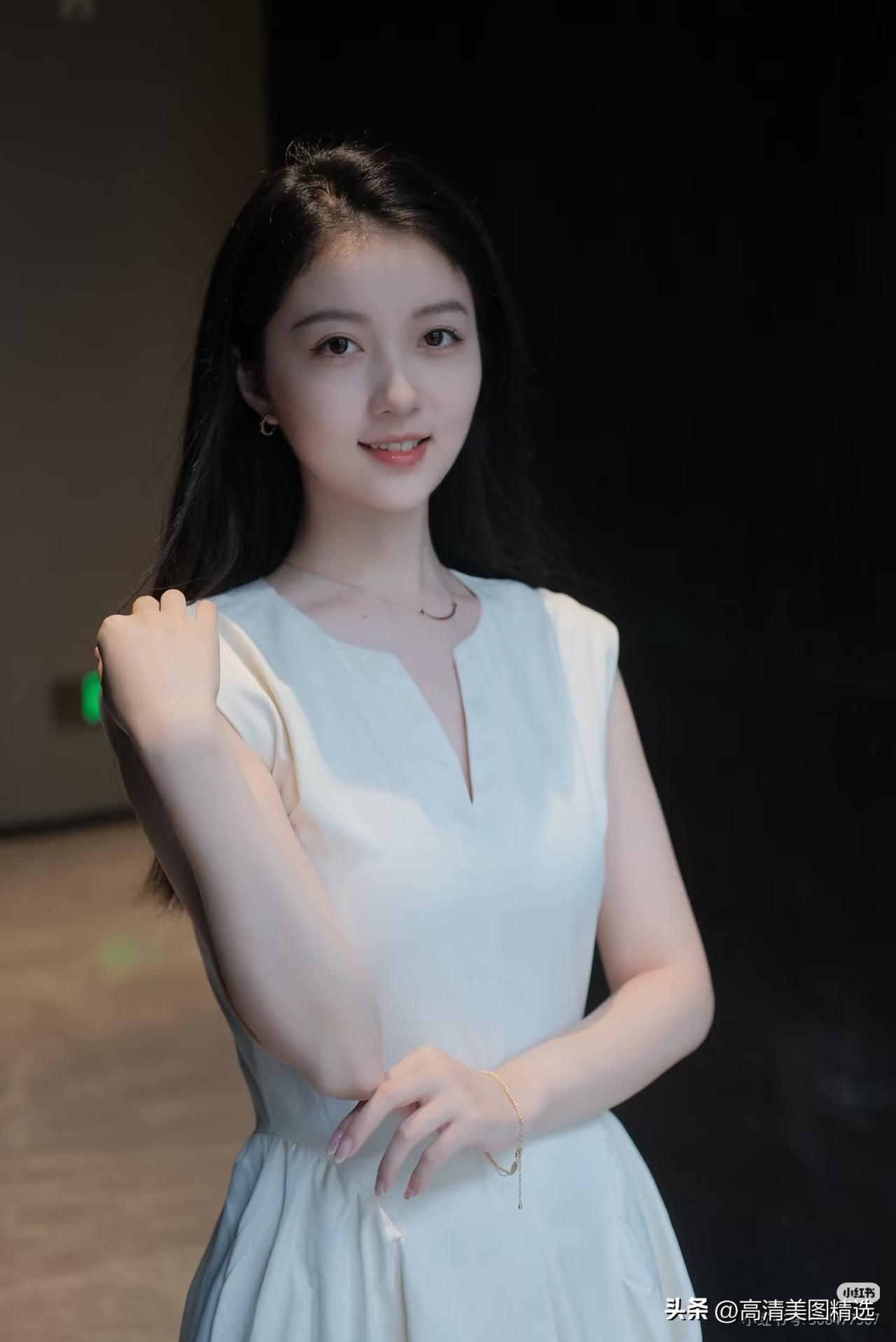 温柔甜美的白裙少女,轻轻抚摸耳畔,散发着优雅的气息。