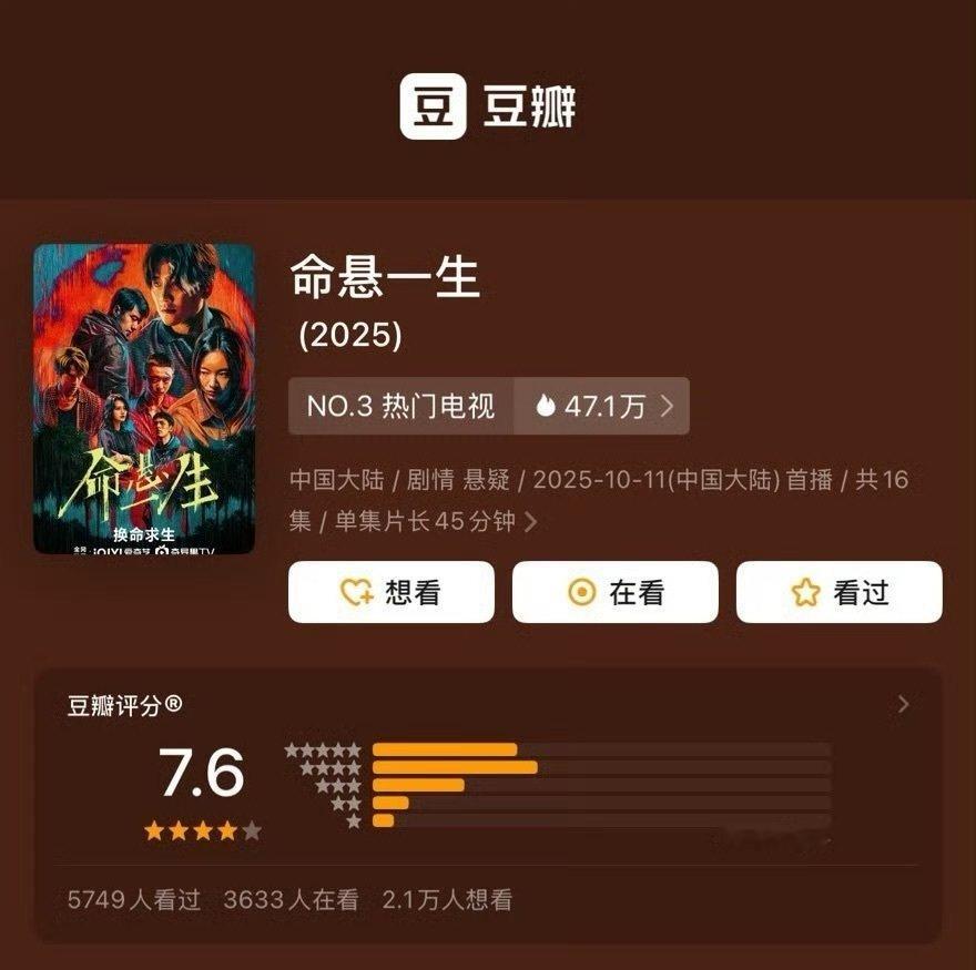 命悬一生2024年来迷雾剧场最高分豆瓣7.6高分认证!全员嫌疑、反转迭起,从第一集直接入坑,追凶路层层剥茧,节奏全程高能电视剧命悬一生