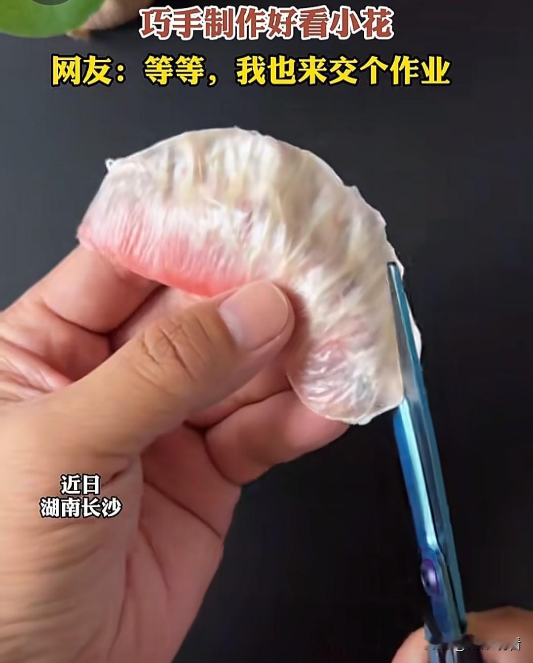 长沙网友的柚子皮秒变绝美小花💐 湖南长沙这位网友也太心灵手巧了吧! 剥